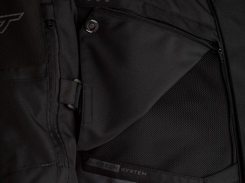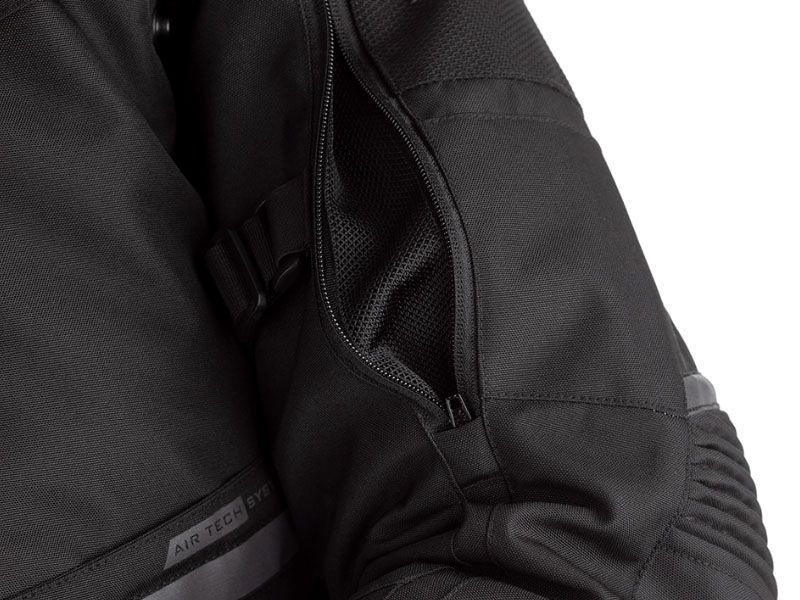 - Sistema de ventilación Air Tech System; dispone de entradas y salidas de aire que se pueden abrir según las necesidades de cada momento. Se consigue una excelente canalización del flujo de aire dentro, alrededor y fuera de la chaqueta.