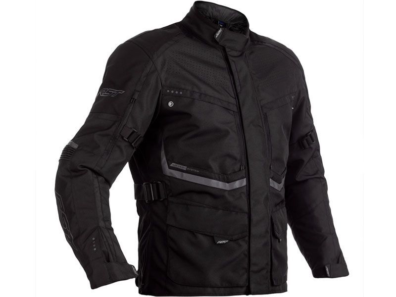 Chaqueta RST Maverick Lady Negro. Nueva chaqueta textil RST Maverick (colección 2020) altamente versátil, confortable y resistente. Diseñada a partir de las indicaciones de Mick Extance, una leyenda de la prueba más exigente y dura del mundo, el París-Dakar. Confeccionada exteriormente con el tejido MaxTex de alta tenacidad, la Maverick de RST ofrece muchas posibilidades de uso, dependiendo de cada tipo de clima e imprescindible en este tipo de chaquetas de aventura; chaqueta sin forros, chaqueta con forro térmico, chaqueta con forro o chaqueta impermeable con protección térmica y forros impermeables. Para garantizar altos niveles de seguridad, la Maverick está cargada de refuerzos adicionales además de las protecciones habituales en hombros, codos y espalda (todas ellas homologadas por la CE). Para ofrecer una excelente ventilación y movilidad sobre la moto, la chaqueta RST Maverick incorpora paneles de malla perforada y paneles elásticos muy amplios.