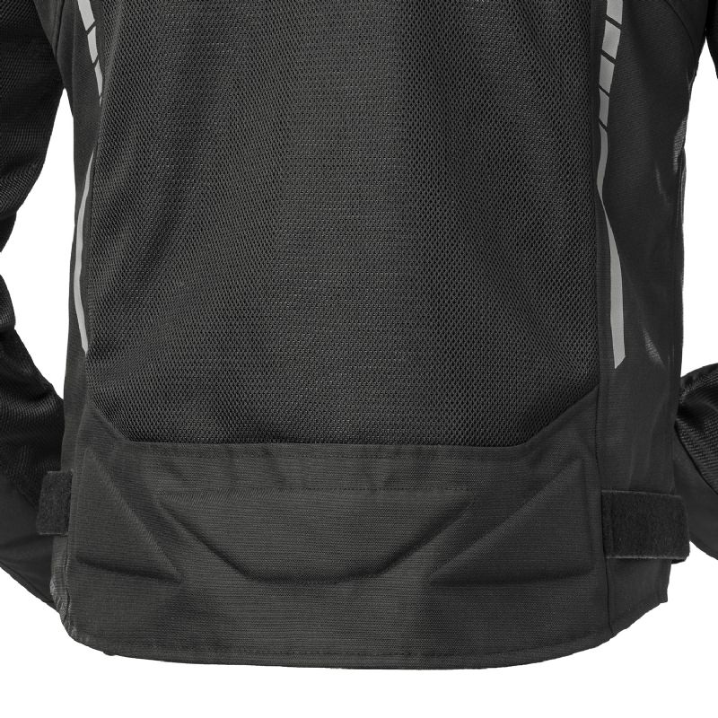 La chaqueta Rainers Jerez 2 está pensada específicamente para los motoristas que quieren rodar frescos sin renunciar a la seguridad. Su diseño de talle corto, a la altura de la cintura, ofrece un ajuste perfecto, mientras que su confección con un 70% de rejilla de poliéster permite una ventilación total. La espalda es completamente transpirable, al igual que los brazos y los cuatro paneles delanteros, convirtiéndola en una de las chaquetas más ventiladas del mercado.
