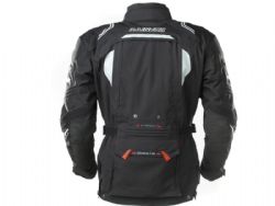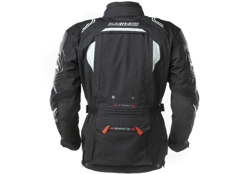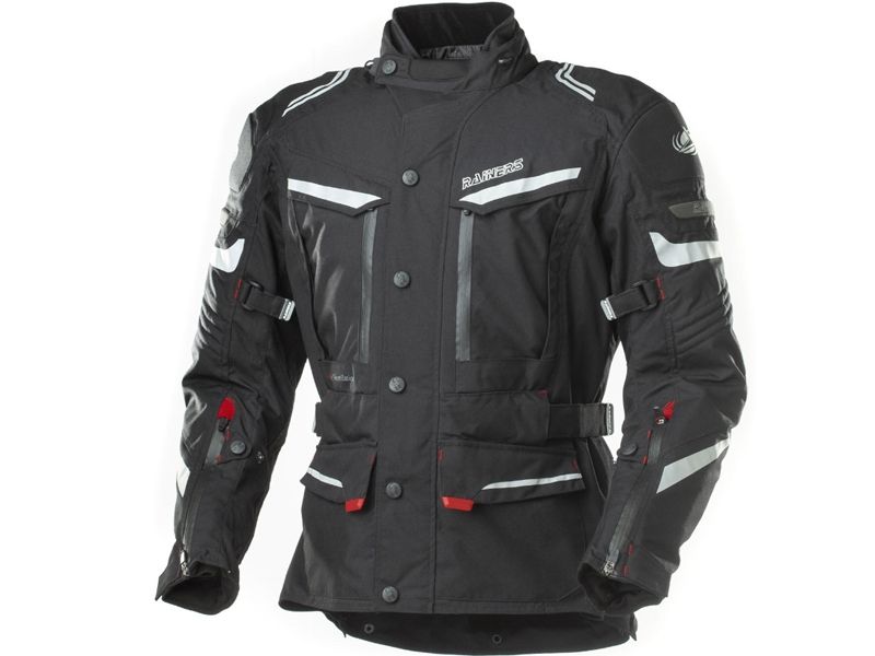 Chaqueta Rainers Tanger Negro. Chaqueta de turismo Rainers Tanger (colección 2019), perfecta para motoristas aventureros. Es muy versátil en diferentes tipos de clima, gracias a su membrana impermeable extraíble, al forro térmico desmontable y a los amplios paneles perforados delanteros y traseros. Confeccionada principalmente en Nylon duradero y tejido de alta resistencia en la zona de los antebrazos para mayor resistencia a la abrasión. Incorpora numerosas regulaciones para garantizar un ajuste altamente personalizable. Incorpora protecciones homologadas (CE) en codos y hombros además de detalles reflectantes en los laterales, zona frontal y zona trasera.