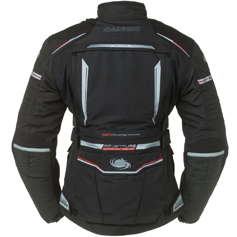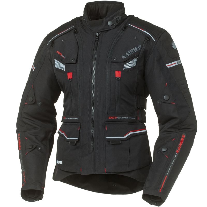 Chaqueta Rainers Telma Negro. La nueva chaqueta de turismo para mujer Rainers Telma está diseñada para ofrecer altos niveles de confort, protección y funcionalidad. Esta chaqueta es ideal para recorrer largas distancias y es muy eficiente sobre cualquier condición climática; gracias a la membrana impermeable extraíble, al forro térmico desmontable y a los amplios paneles perforados delanteros y traseros (ambos desmontables). Confeccionada principalmente en Nylon y Poliéster 600-D, la Telma cuenta además con un tejido de alta resistencia en la zona de los antebrazos para mayor resistencia a la abrasión en caso de caída. Incorpora numerosas regulaciones para garantizar un ajuste altamente personalizable. Incorpora protecciones homologadas (CE) en codos y hombros, detalles reflectantes ubicados en zonas estratégicas y amplios bolsillos.