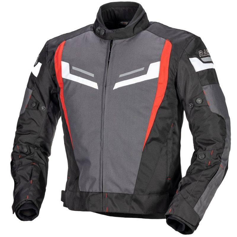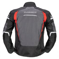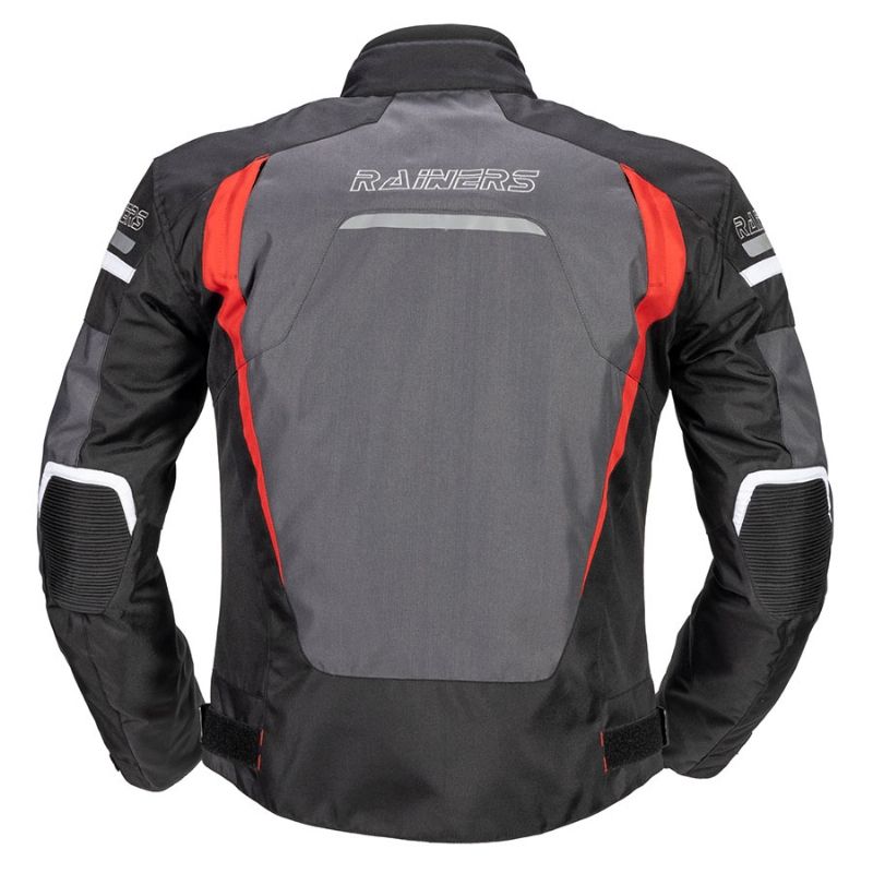 Chaqueta Rainers Track Negro / Gris / Rojo. La chaqueta Rainers Track Invierno Racing refleja la esencia de la conducción deportiva con un diseño que combina funcionalidad y estilo. Con un talle corto distintivo, esta prenda está confeccionada con resistente poliéster 600D, garantizando durabilidad y una protección fiable contra el desgaste.
