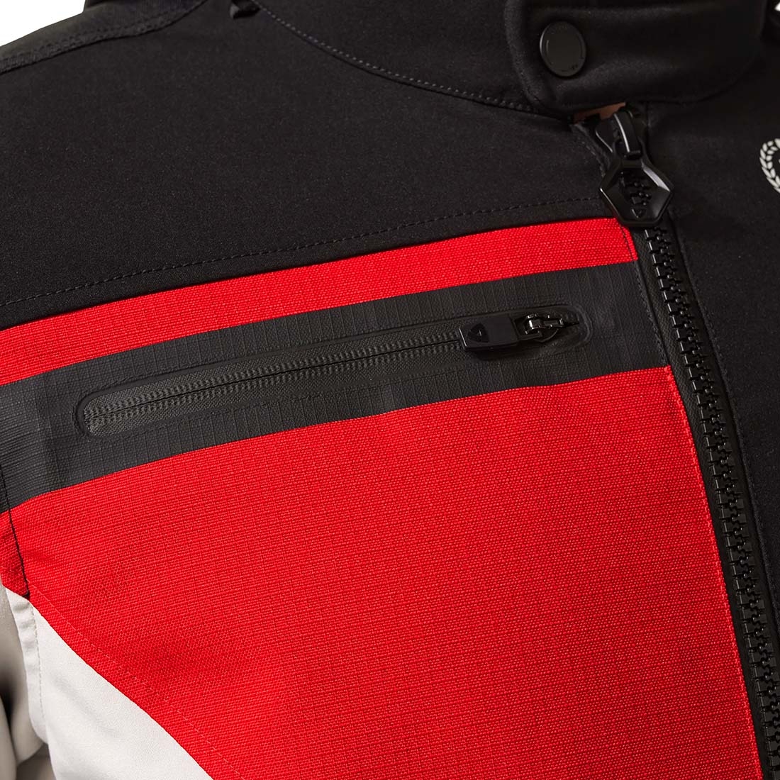 Chaqueta Revit Haste H2O Negro / Rojo. La Revit Haste H2O es una chaqueta urbana impermeable que combina estilo deportivo, comodidad y protección en una sola prenda. Diseñada para los motoristas que no se detienen ante el mal tiempo, cuenta con una membrana Hydratex|Mesh G-liner que ofrece una impermeabilidad total sin sacrificar la transpirabilidad. Su forro térmico desmontable proporciona un excelente aislamiento en días fríos, permitiendo adaptarse fácilmente a las distintas estaciones del año.