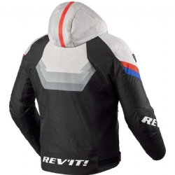 Chaqueta Revit Quantum 3 H2O Negro / Gris Claro. La Revit Quantum 3 H2O es una chaqueta urbana de estilo deportivo perfecta para las épocas frías. Su diseño con capucha desmontable y sus líneas modernas la convierten en una prenda versátil tanto para el día a día como para tus trayectos urbanos en moto. Fabricada en poliéster 600D con refuerzos Ripstop en zonas estratégicas, ofrece una excelente resistencia a la abrasión y una gran durabilidad.