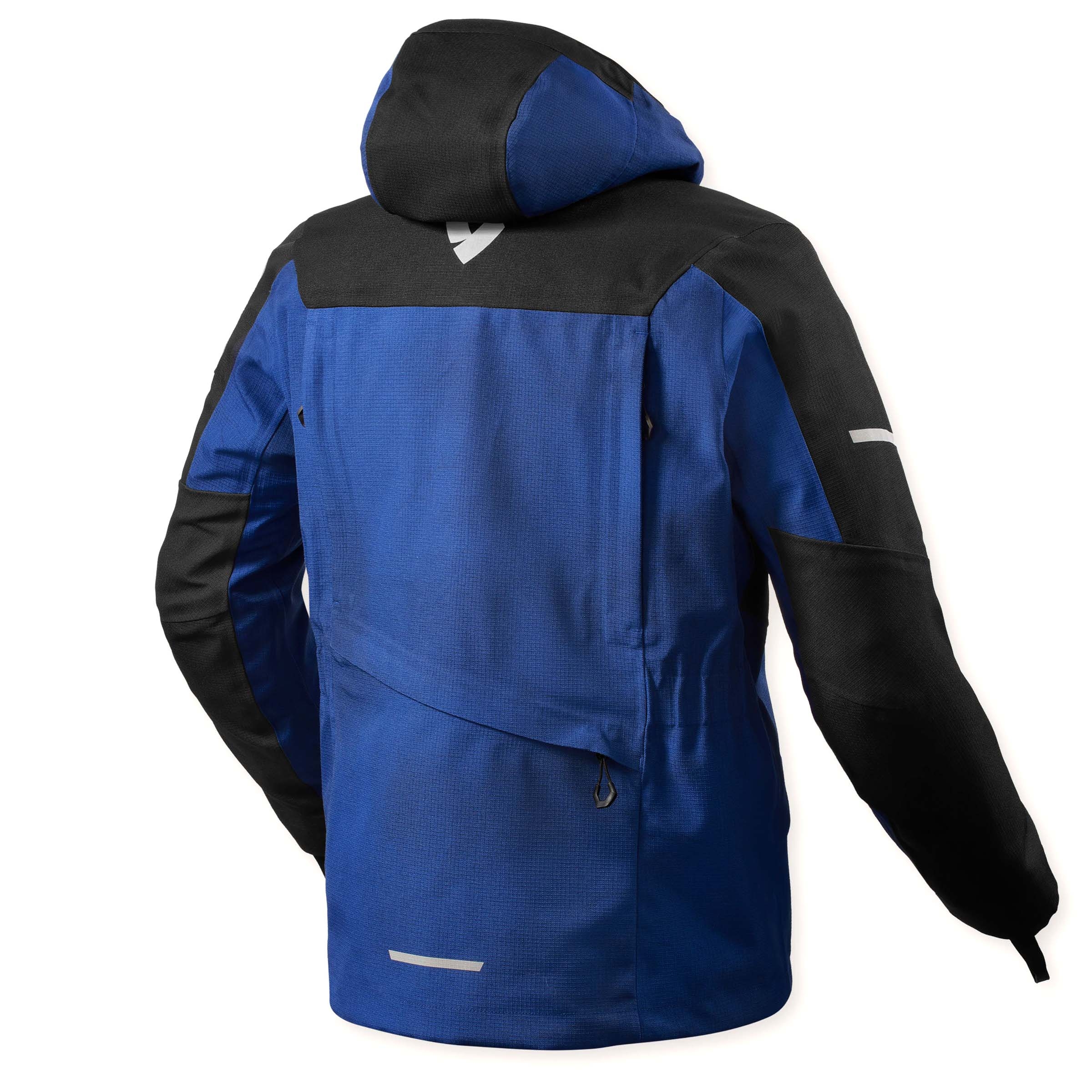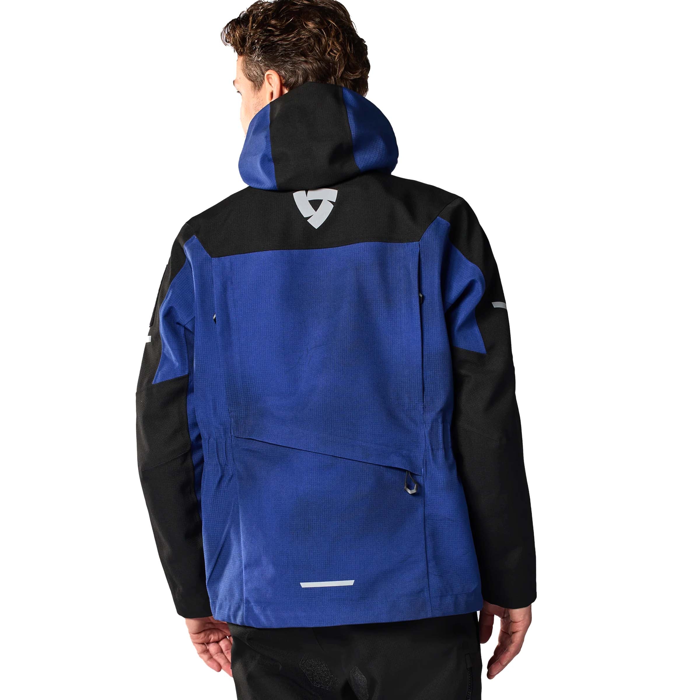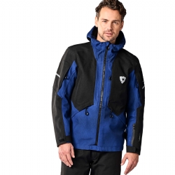 Chaqueta Revit Tectonic H2O Azul / Negro. La Revit Tectonic H2O es una chaqueta adventure touring modular diseñada para acompañarte en los viajes más exigentes, sin importar el clima. Su concepto se basa en un sistema de capas inteligente que combina una capa exterior impermeable con una chaqueta interior ventilada de malla, permitiendo una excelente ventilación en verano y protección total frente a la lluvia en condiciones adversas.