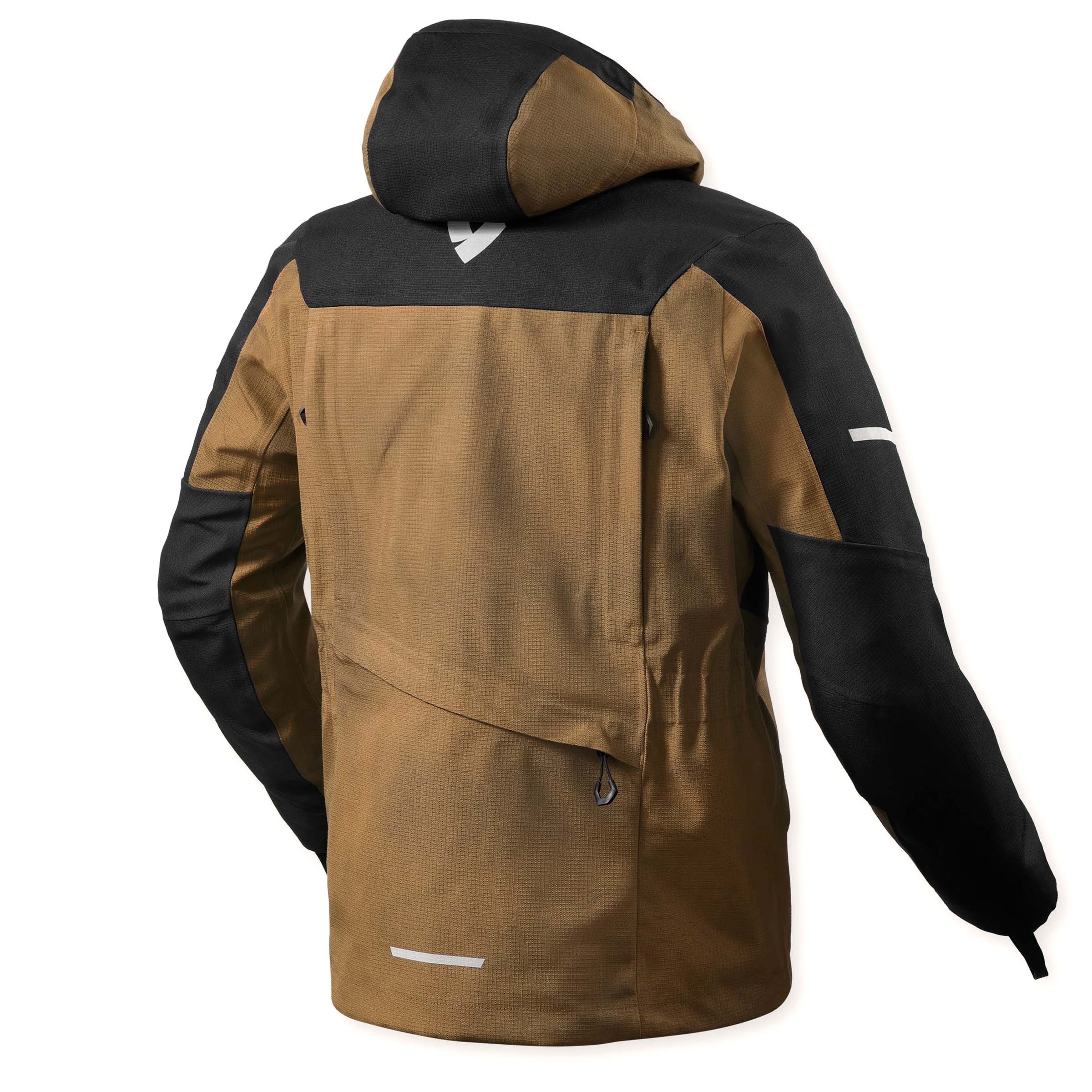 Chaqueta Revit Tectonic H2O Marrón / Negro. La Revit Tectonic H2O es una chaqueta adventure touring modular diseñada para acompañarte en los viajes más exigentes, sin importar el clima. Su concepto se basa en un sistema de capas inteligente que combina una capa exterior impermeable con una chaqueta interior ventilada de malla, permitiendo una excelente ventilación en verano y protección total frente a la lluvia en condiciones adversas.