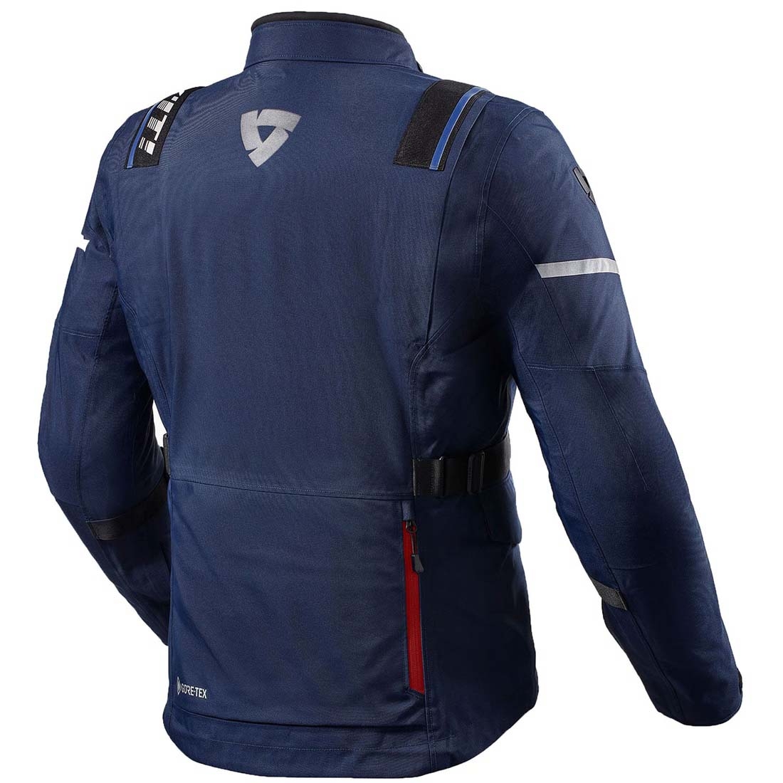 Chaqueta Revit Vertical GTX Azul / Negro. La Revit Vertical GTX es una chaqueta touring premium que combina tecnología GORE-TEX® 2L con materiales de alta resistencia para ofrecer la máxima protección, impermeabilidad y confort en cualquier condición. Diseñada para motoristas que recorren largas distancias o buscan una prenda versátil para el día a día, esta chaqueta destaca por su rendimiento, durabilidad y capacidad de adaptación al clima.