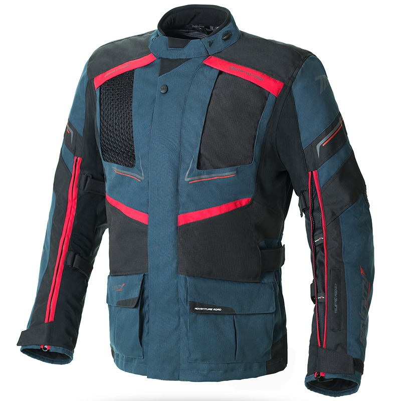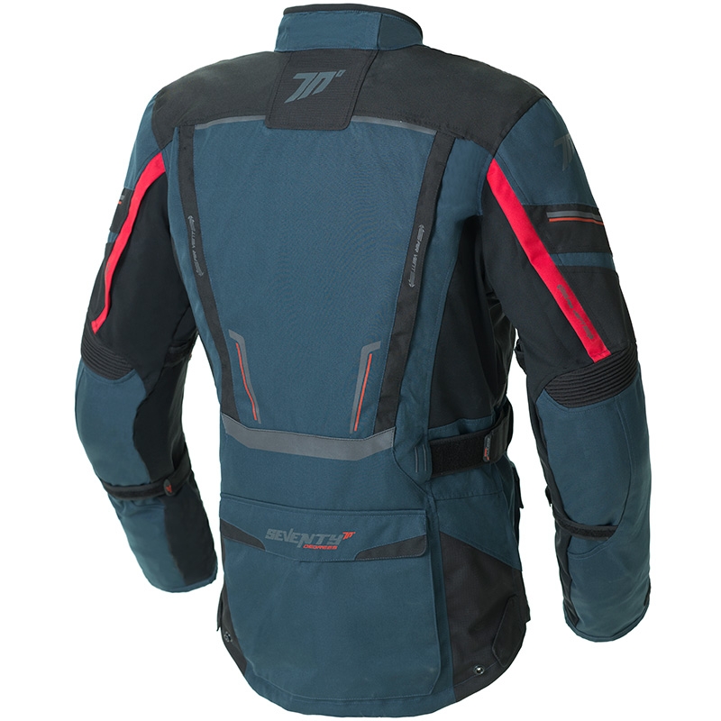 Chaqueta Seventy Degrees SD-JT81 Azul / Rojo / Negro. Nueva chaqueta de moto bi-capa Seventy Degrees SD-JT81, ideal tanto para conducción trail adeventure como para rutas de turismo en la temporada de invierno. Confeccionada en tejido 600D, un tipo de material compuesto de hilo de poliéster con una alta densidad de tejido que aumenta la protección y la resistencia a la abrasión y además tiene propiedades impermeables. Diseñada para ofrecer altos niveles de versatilidad, la chaqueta Seventy Degrees SD-JT81 dispone de un efectivo forro térmico y membrana impermeable Wintertex (ambos desmontables). Amplios paneles de ventilación por toda la chaqueta, números ajustes y bolsillos y protecciones en hombros, codos y espalda, son algunas de las características destacadas de la chaqueta SD-JT81.