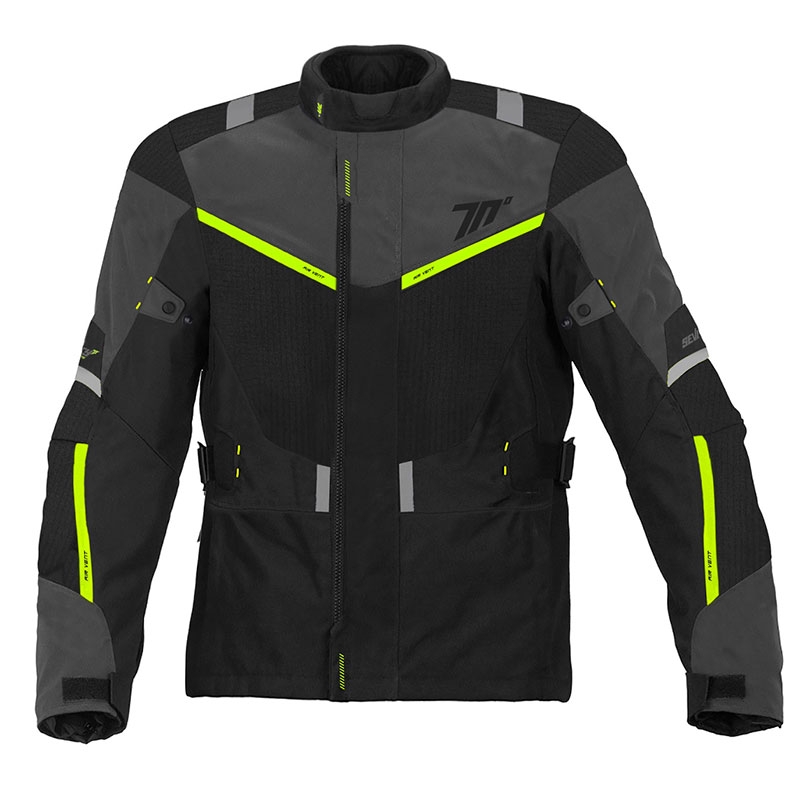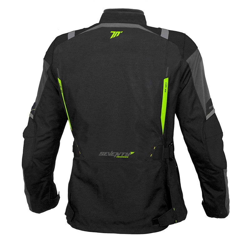 Chaqueta Seventy Degrees SD-JT83 Winter Touring Negro / Amarillo Fluor. Nueva chaqueta de turismo para hombre Seventy Degrees SD-JT83, ideal para circular en moto en media temporada. Confeccionada en poliéster de alta densidad 600D, incorpora relleno de Prilation 75 gramos y tejido impermeable (no desmontable). Dispone de aberturas de aire con cremalleras en la zona frontal, espalda y en los brazos. La chaqueta Seventy Degrees SD-JT83 cuenta con protectores desmontables en los hombros y codos de nivel 1 homologadas (EN1621-1:2012) y ajustes en los brazos, en el cuello y los puños.