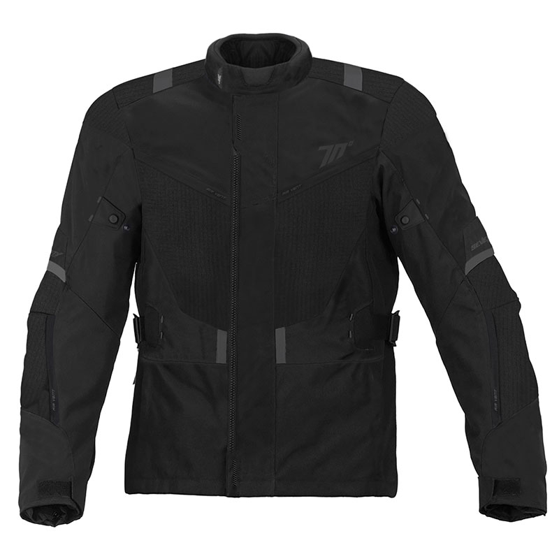 Chaqueta Seventy Degrees SD-JT83 Winter Touring Negro. Nueva chaqueta de turismo para hombre Seventy Degrees SD-JT83, ideal para circular en moto en media temporada. Confeccionada en poliéster de alta densidad 600D, incorpora relleno de Prilation 75 gramos y tejido impermeable (no desmontable). Dispone de aberturas de aire con cremalleras en la zona frontal, espalda y en los brazos. La chaqueta Seventy Degrees SD-JT83 cuenta con protectores desmontables en los hombros y codos de nivel 1 homologadas (EN1621-1:2012) y ajustes en los brazos, en el cuello y los puños.
