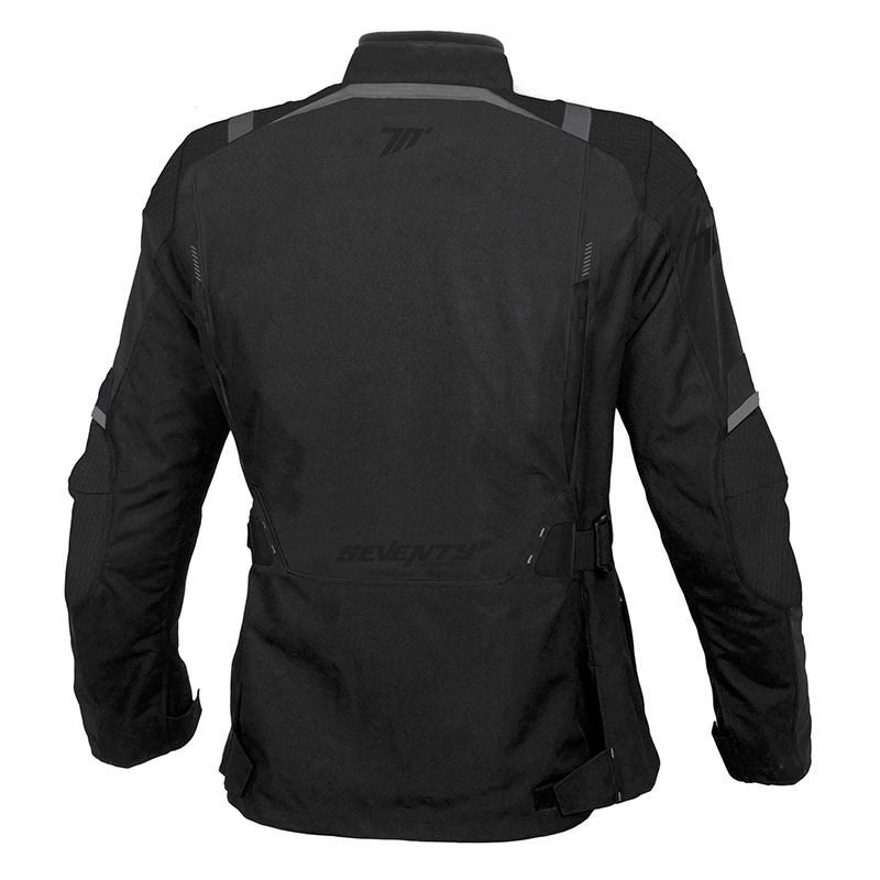 Chaqueta Seventy Degrees SD-JT85 Winter Touring Negro. Nueva chaqueta de turismo para mujer Seventy Degrees SD-JT85, ideal para circular en moto en media temporada. Confeccionada en poliéster de alta densidad 600D, incorpora relleno de Prilation 75 gramos y tejido impermeable (no desmontable). Dispone de aberturas de aire con cremalleras en la zona frontal, espalda y en los brazos. La chaqueta Seventy Degrees SD-JT85 cuenta con protectores desmontables en los hombros y codos de nivel 1 homologadas (EN1621-1:2012) y ajustes en los brazos, en el cuello y los puños.
