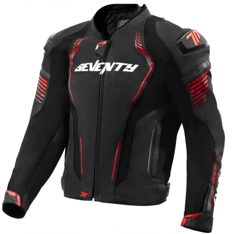 Chaqueta Seventy SD-JL24 Spoiler Hombre Negro / Rojo. Chaqueta Seventy Degrees SD-JL24 Spoiler – Diseño Racing, protección y confort deportivo. La Seventy Degrees SD-JL24 Spoiler es una chaqueta deportiva pensada para motoristas que buscan un alto nivel de protección y un diseño agresivo sin renunciar a la comodidad. Gracias a su confección en cuero perforado de alta calidad y a sus múltiples elementos técnicos, está diseñada tanto para uso en carretera deportiva como para disfrutar en circuito.