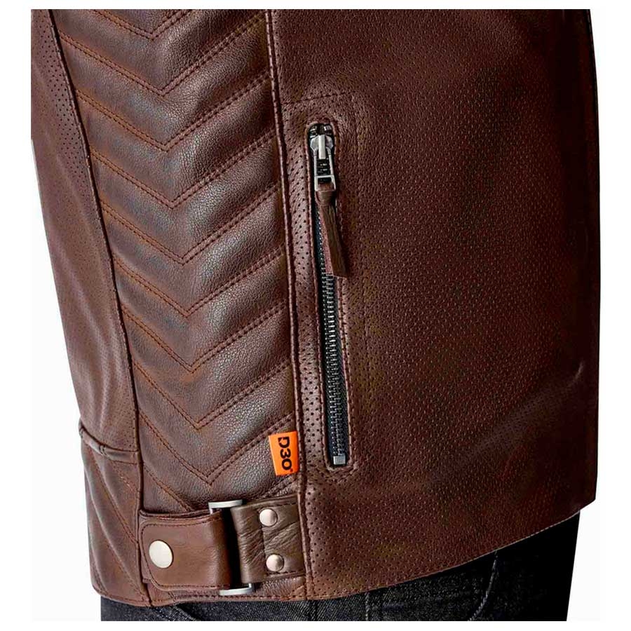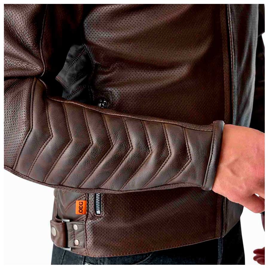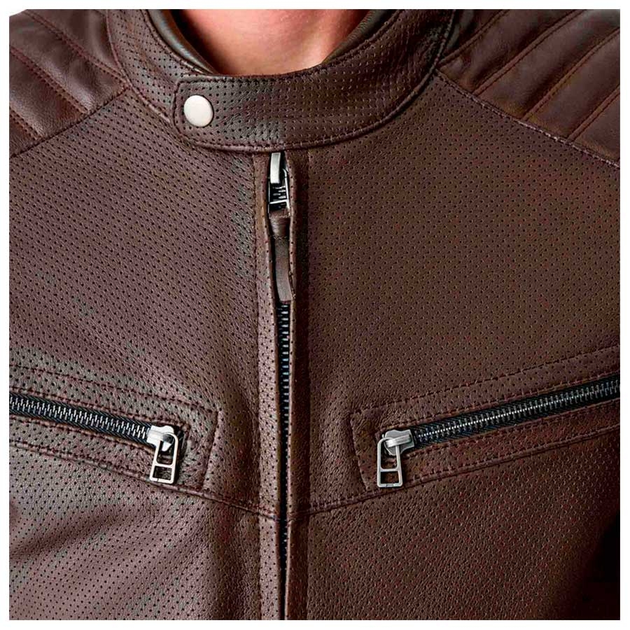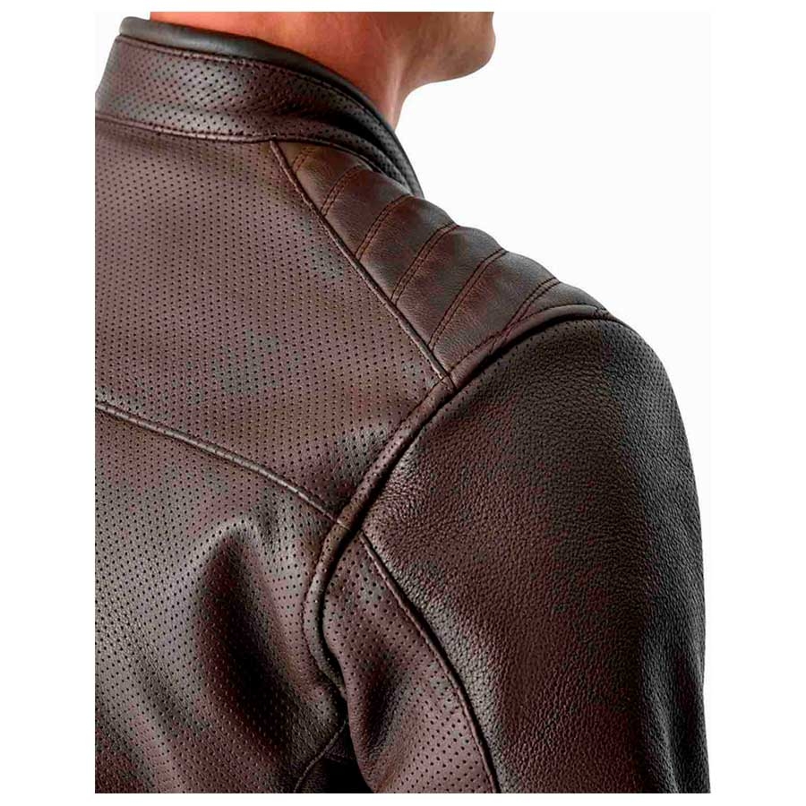 Está confeccionada en cuero premium aniline wax, con un acabado elegante y con carácter, y ahora incorpora protecciones D3O para sumar seguridad sin romper la estética. Ideal para quien quiere una chaqueta de piel con estilo “café racer” o retro, pero que no sea un horno en verano.