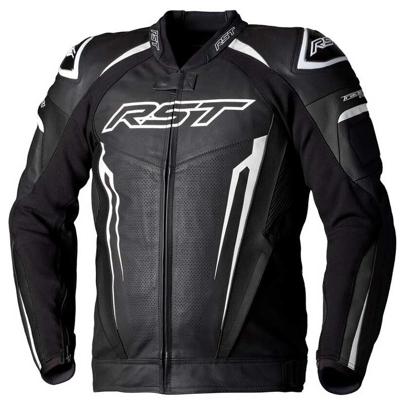 Chaqueta piel RST TracTech Evo 5 Negro / Blanco / Negro. La Chaqueta de piel RST TracTech Evo 5 se sitúa en la vanguardia del equipamiento para motoristas, ofreciendo una sinergia perfecta entre estilo, comodidad y funcionalidad. Inspirada en el prestigioso mono de competición RST TracTech Evo 5, esta chaqueta no solo lleva el diseño y la tecnología a nuevos niveles, sino que también promete mejorar la experiencia de conducción tanto en la pista como en la carretera.