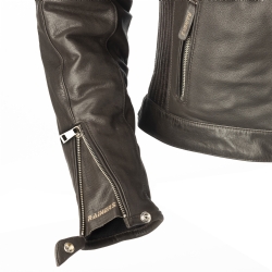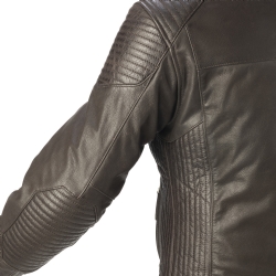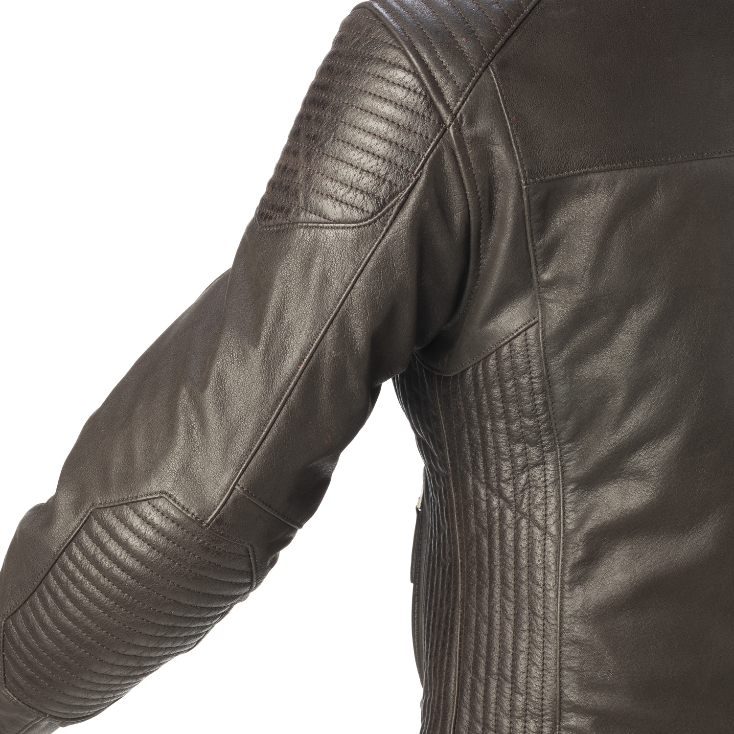 - Refuerzos acolchados exteriores de piel en hombros y codos, que aumentan la resistencia a la abrasión y aportan un toque clásico.
