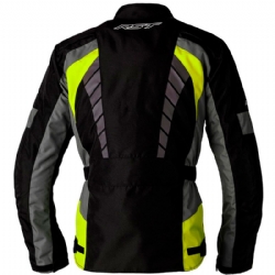 Chaqueta textil RST Alpha 5 CE Amarillo Flúor. Chaqueta de turismo estilo tres cuartos que ofrece un excelente precio con todas las características básicas que necesitas en una prenda de moto. Su confección principal en tejido MaxTex con costuras Core Spun de poliéster la hace especialmente duradera y resistente a la abrasión. La RST Alpha 5 destaca por ser versátil en diferentes climas, gracias a su forro térmico desmontable, a su membrana impermeable SinAqua y a las aberturas en la zona delantera y trasera de la chaqueta. Las protecciones certificadas en los codos y los hombros garantizan una óptima seguridad contra los impactos mientras que los detalles reflectantes mejoran la visibilidad cuando circulamos por la noche.