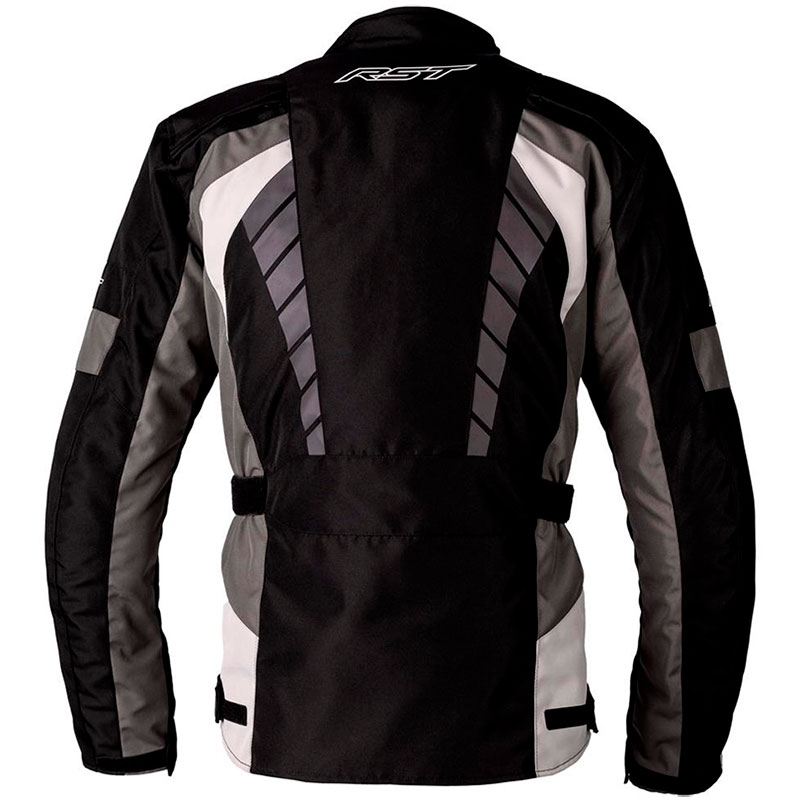 Chaqueta textil RST Alpha 5 CE Gris. Chaqueta de turismo estilo tres cuartos que ofrece un excelente precio con todas las características básicas que necesitas en una prenda de moto. Su confección principal en tejido MaxTex con costuras Core Spun de poliéster la hace especialmente duradera y resistente a la abrasión. La RST Alpha 5 destaca por ser versátil en diferentes climas, gracias a su forro térmico desmontable, a su membrana impermeable SinAqua y a las aberturas en la zona delantera y trasera de la chaqueta. Las protecciones certificadas en los codos y los hombros garantizan una óptima seguridad contra los impactos mientras que los detalles reflectantes mejoran la visibilidad cuando circulamos por la noche.