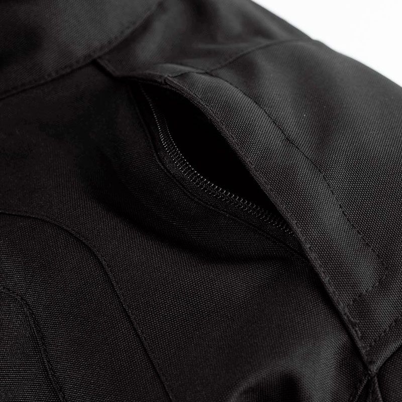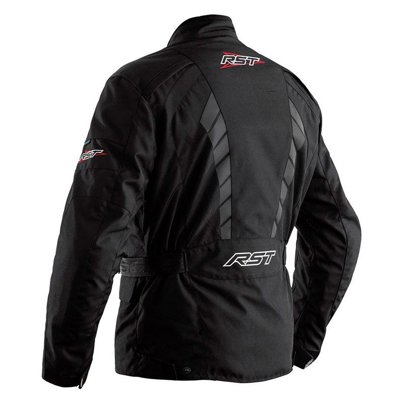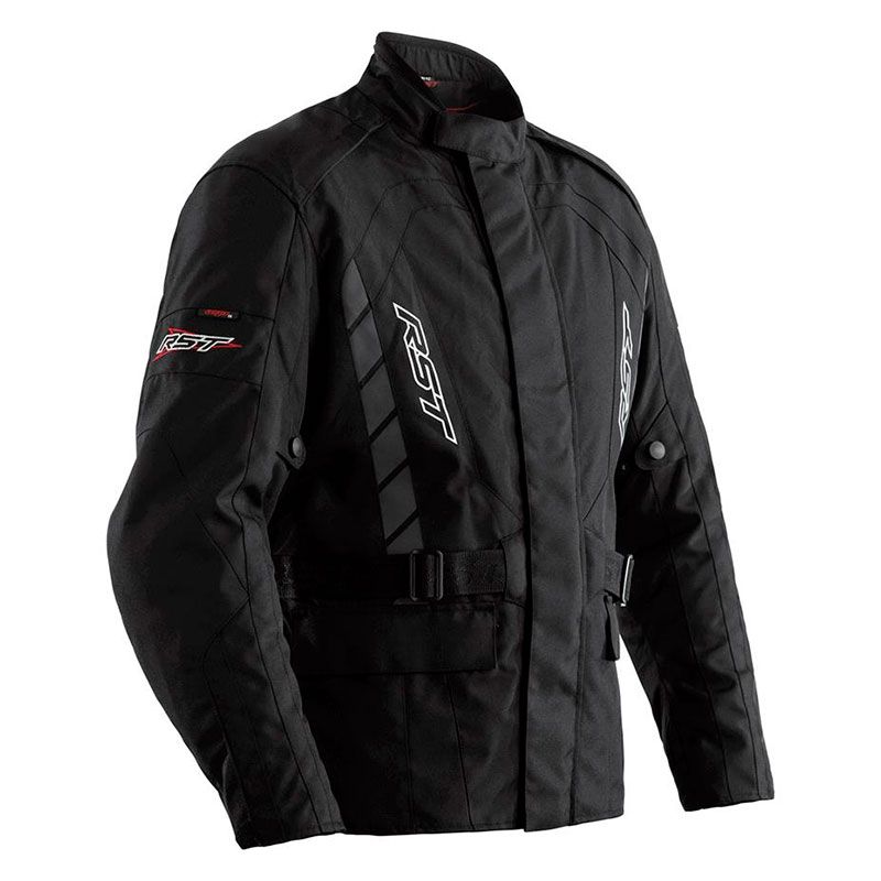 Chaqueta textil RST Alpha 5 CE Negro (colección 2020). Chaqueta de turismo estilo tres cuartos que ofrece un excelente precio con todas las características básicas que necesitas en una prenda de moto. Su confección principal en tejido MaxTex con costuras Core Spun de poliéster la hace especialmente duradera y resistente a la abrasión. La RST Alpha 5 destaca por ser versátil en diferentes climas, gracias a su forro térmico desmontable, a su membrana impermeable SinAqua y a las aberturas en la zona delantera y trasera de la chaqueta. Las protecciones certificadas en los codos y los hombros garantizan una óptima seguridad contra los impactos mientras que los detalles reflectantes mejoran la visibilidad cuando circulamos por la noche.