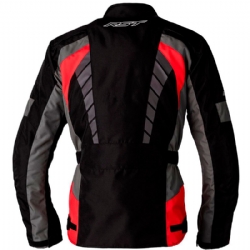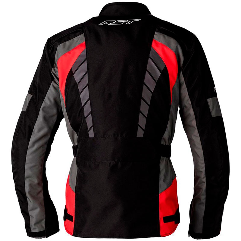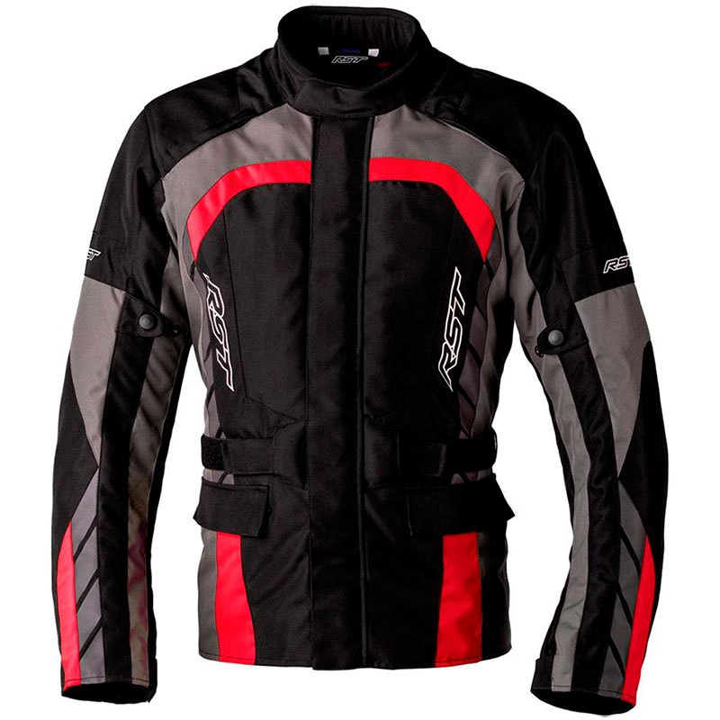 Chaqueta textil RST Alpha 5 CE Rojo. Chaqueta de turismo estilo tres cuartos que ofrece un excelente precio con todas las características básicas que necesitas en una prenda de moto. Su confección principal en tejido MaxTex con costuras Core Spun de poliéster la hace especialmente duradera y resistente a la abrasión. La RST Alpha 5 destaca por ser versátil en diferentes climas, gracias a su forro térmico desmontable, a su membrana impermeable SinAqua y a las aberturas en la zona delantera y trasera de la chaqueta. Las protecciones certificadas en los codos y los hombros garantizan una óptima seguridad contra los impactos mientras que los detalles reflectantes mejoran la visibilidad cuando circulamos por la noche.