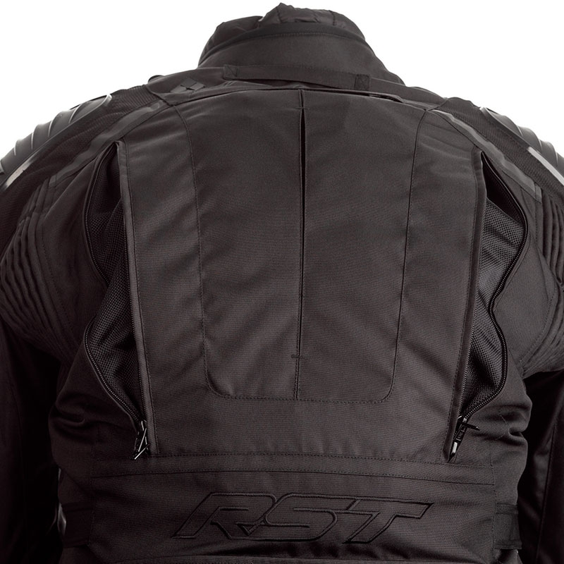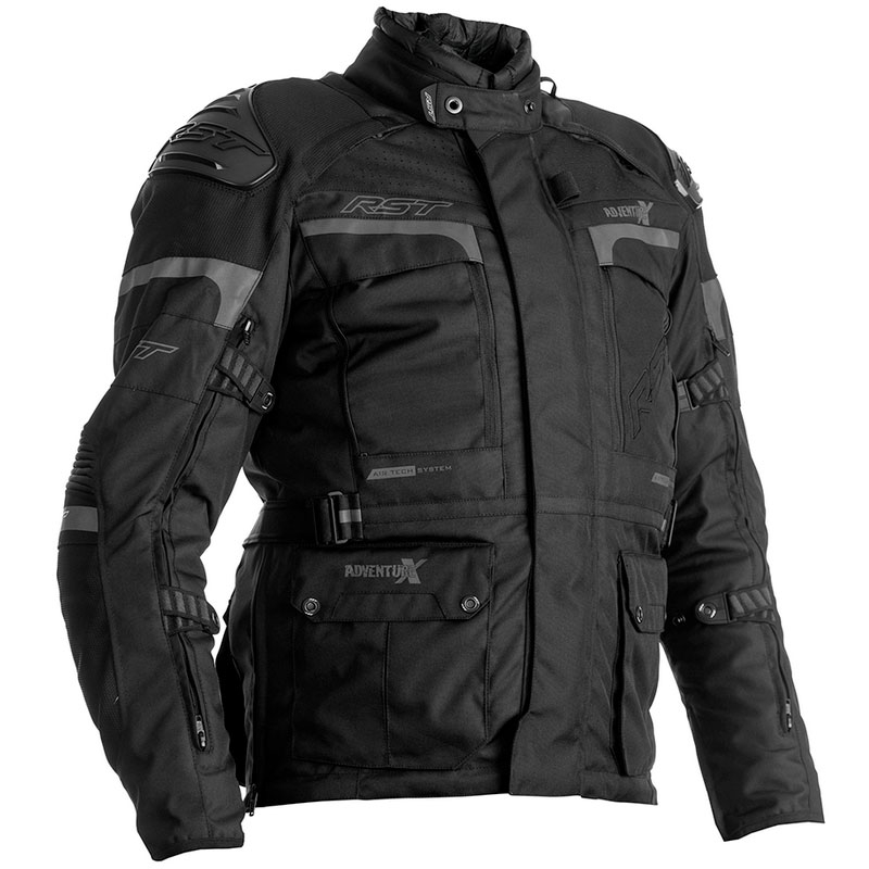 Chaqueta textil RST Pro Series Adventure-X CE Negro. Desde el gélido invierno escocés hasta el abrasador desierto australiano, la Adventure-X es la chaqueta ideal para el motociclismo de aventura. Confeccionada con tejido de alta calidad (MaxTex) para ofrecer altos niveles de confort, protección y resistencia a la abrasión. Altamente versátil en diferentes tipos de clima gracias a la incorporación del innovador X-Liner, un forro muy ligero que presenta la combinación del forro térmico acolchado y la membrana impermeable SinAqua. Además se puede quitar fácilmente y guardar en el bolsillo portamapas ubicado en la zona trasera de la chaqueta. Las múltiples ventilaciones en el pecho, los brazos y la parte trasera, aseguran excelentes niveles de flujo de aire dentro y fuera de la chaqueta, manteniéndote fresco mientras conduces.