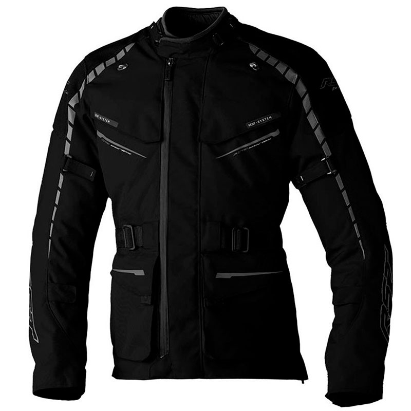 Chaqueta textil RST Pro Series Commander CE Negro. Pro Series Commander es la nueva chaqueta touring de gama alta de RST dotada con la membrana laminada SinAqua Pro de alta eficiencia contra fuertes lluvias. Ha sido confeccionada con tejidos mejorados y altamente resistentes para elevar las prestaciones de seguridad y de confort. La chaqueta RST Pro Series Commander dispone de un forro extraíble con 150 gramos de aislamiento térmico y ventilaciones de flujo directo hacia el al cuerpo con solapas adicionales contra las tormentas. Incluye protecciones certificadas de Nivel 2 en codos, hombros y espalda que garantizan la máxima seguridad contra los impactos. Incorpora cremalleras SAB que destacan por ser muy fuertes y además son totalmente selladas contra el agua. Todas estás características convierten a la RST Commander en una de las mejores chaquetas laminadas de mejor precio. Combínala con los pantalones RST Pro Series Commander y forma un fantástico traje de 2 piezas para afrontar tus próximos viajes con la mayor garantía.