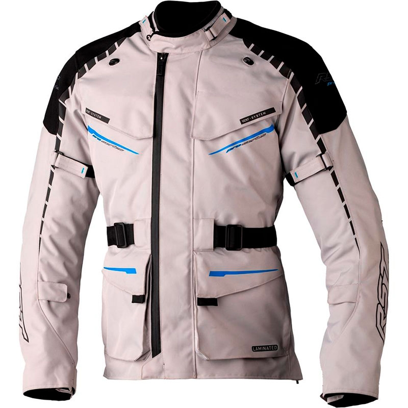 Chaqueta textil RST Pro Series Commander CE Plata / Azul. Pro Series Commander es la nueva chaqueta touring de gama alta de RST dotada con la membrana laminada SinAqua Pro de alta eficiencia contra fuertes lluvias. Ha sido confeccionada con tejidos mejorados y altamente resistentes para elevar las prestaciones de seguridad y de confort. La chaqueta RST Pro Series Commander dispone de un forro extraíble con 150 gramos de aislamiento térmico y ventilaciones de flujo directo hacia el al cuerpo con solapas adicionales contra las tormentas. Incluye protecciones certificadas de Nivel 2 en codos, hombros y espalda que garantizan la máxima seguridad contra los impactos. Incorpora cremalleras SAB que destacan por ser muy fuertes y además son totalmente selladas contra el agua. Todas estás características convierten a la RST Commander en una de las mejores chaquetas laminadas de mejor precio. Combínala con los pantalones RST Pro Series Commander y forma un fantástico traje de 2 piezas para afrontar tus próximos viajes con la mayor garantía.