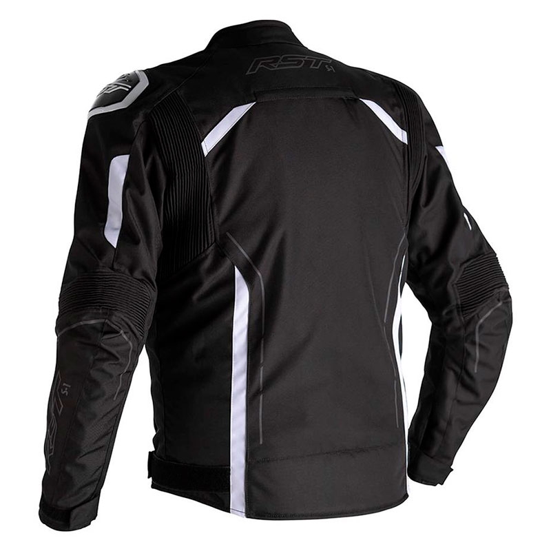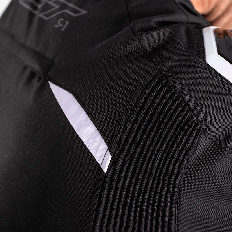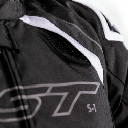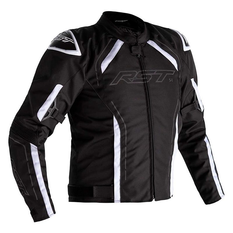 Chaqueta textil RST S1 Negro / Negro / Blanco. De aspecto deportivo a la vez que agresivo, la chaqueta RST S1 ha sido diseñada para ofrecer confort, seguridad y versatilidad en el día a día. Confeccionada con tejido muy resistente Maxtex, dispone de forro impermeable SinAqua, forro térmico extraíble y sistema de ventilación para una protección total contra los elementos. Incorpora paneles elásticos detrás de codos y brazos para mayor movilidad y diferentes ajustes en puños, mangas y cintura para un ajuste personalizado. La chaqueta RST S1 está equipada con protectores interiores CE Nivel 1 en codos y hombros pero además dispone de otros protectores exteriores de PU moldeado para una resistencia adicional a los impactos.