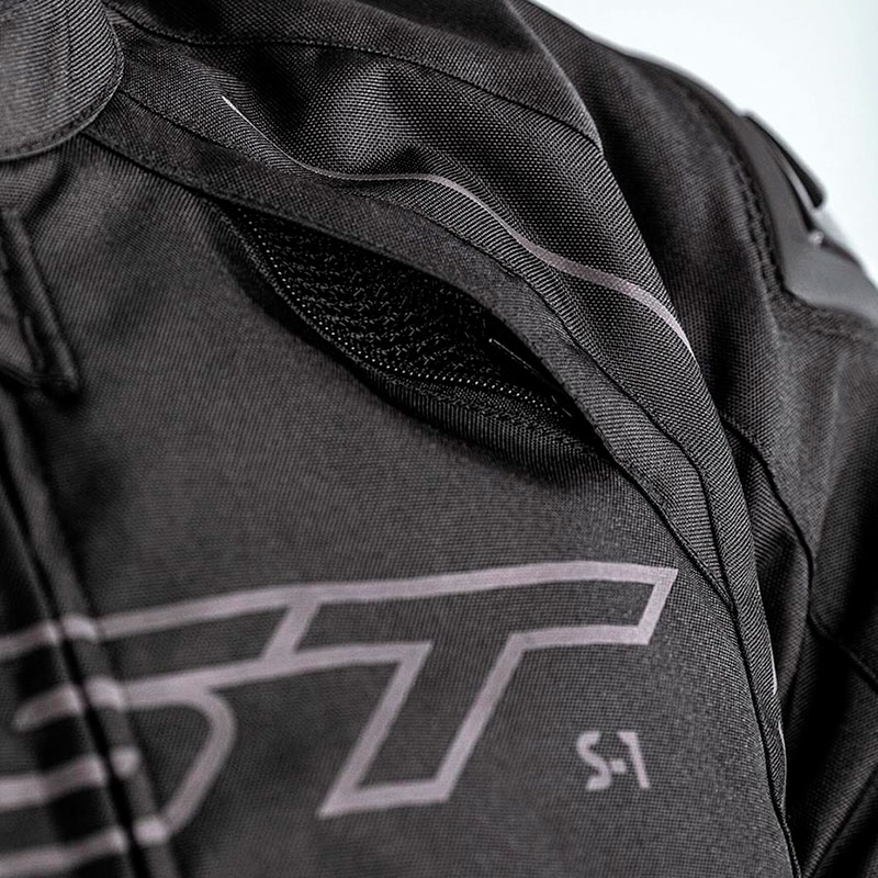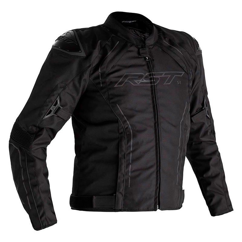 Chaqueta textil RST S1 Negro / Negro / Negro. De aspecto deportivo a la vez que agresivo, la chaqueta RST S1 ha sido diseñada para ofrecer confort, seguridad y versatilidad en el día a día. Confeccionada con tejido muy resistente Maxtex, dispone de forro impermeable SinAqua, forro térmico extraíble y sistema de ventilación para una protección total contra los elementos. Incorpora paneles elásticos detrás de codos y brazos para mayor movilidad y diferentes ajustes en puños, mangas y cintura para un ajuste personalizado. La chaqueta RST S1 está equipada con protectores interiores CE Nivel 1 en codos y hombros pero además dispone de otros protectores exteriores de PU moldeado para una resistencia adicional a los impactos.