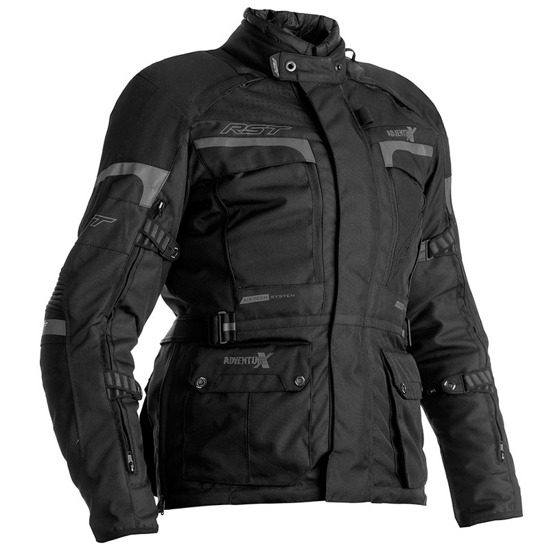Chaqueta textil mujer RST Adventure-X Woman CE Negro. Desde el gélido invierno escocés hasta el abrasador desierto australiano, la Adventure-X es la chaqueta ideal para el motociclismo de aventura. Confeccionada con tejido de alta calidad (MaxTex) para ofrecer altos niveles de confort, protección y resistencia a la abrasión. Altamente versátil en diferentes tipos de clima gracias a la incorporación del innovador X-Liner, un forro muy ligero que presenta la combinación del forro térmico acolchado y la membrana impermeable SinAqua. Además se puede quitar fácilmente y guardar en el bolsillo portamapas ubicado en la zona trasera de la chaqueta. Las múltiples ventilaciones en el pecho, los brazos y la parte trasera, aseguran excelentes niveles de flujo de aire dentro y fuera de la chaqueta, manteniéndote fresco mientras conduces.