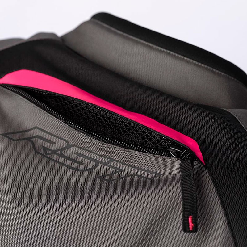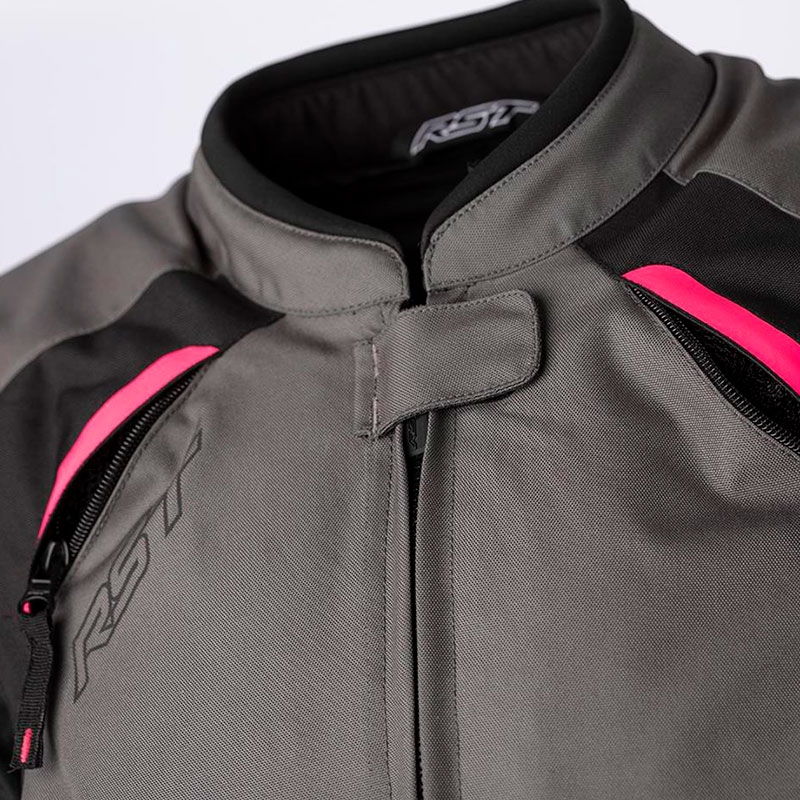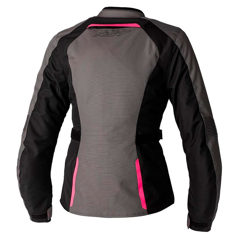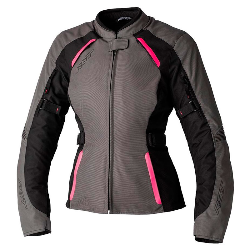 Chaqueta textil mujer RST Ava Ava CE Rosa Flúor. La nueva chaqueta de turismo RST Ava ha sido diseñado con un nuevo patrón de ajuste específico para mujer. Gracias a su confección en tejido MaxTex con costuras Core Spun de poliéster, alcanza la certificación CE AA. Cuenta con forro térmico desmontable y aberturas de ventilación en la zona delantera y trasera de la chaqueta para mayor confort. Las protecciones certificadas en los codos y los hombros garantizan una óptima seguridad contra los impactos.