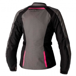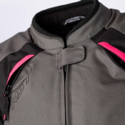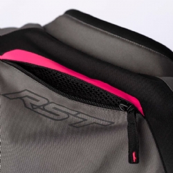 Chaqueta textil mujer RST Ava Ava CE Rosa Flúor. La nueva chaqueta de turismo RST Ava ha sido diseñado con un nuevo patrón de ajuste específico para mujer. Gracias a su confección en tejido MaxTex con costuras Core Spun de poliéster, alcanza la certificación CE AA. Cuenta con forro térmico desmontable y aberturas de ventilación en la zona delantera y trasera de la chaqueta para mayor confort. Las protecciones certificadas en los codos y los hombros garantizan una óptima seguridad contra los impactos.