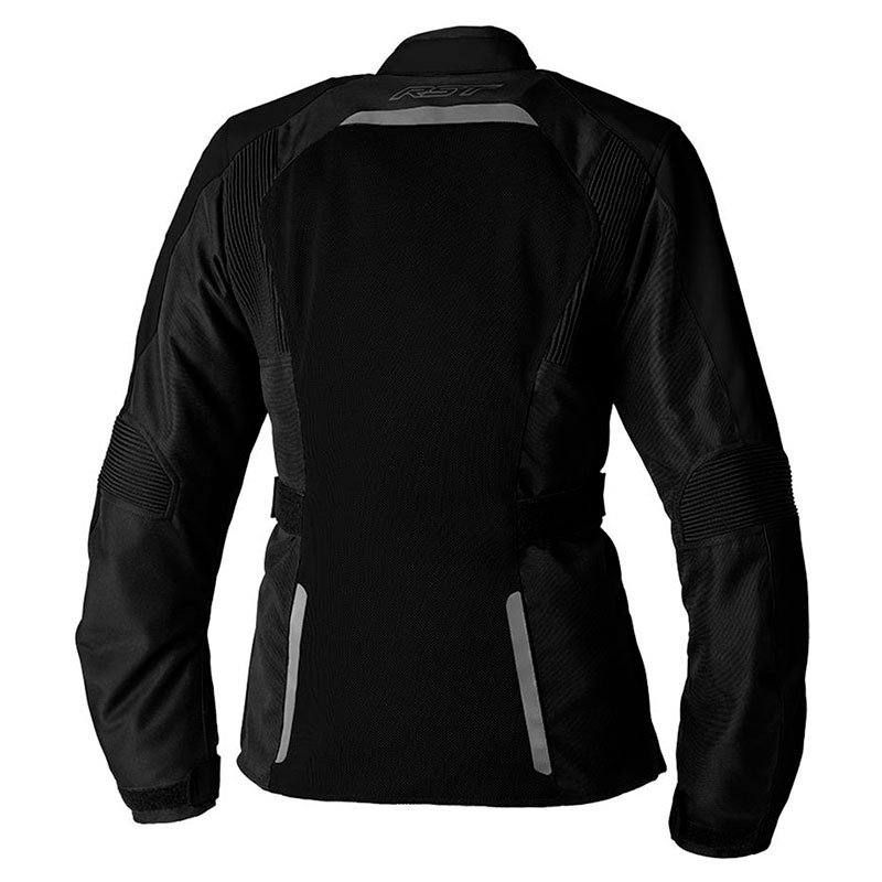 Chaqueta textil mujer RST Ava Mesh CE Negro. La nueva chaqueta de turismo RST Ava Mesh ha sido diseñado con un nuevo patrón de ajuste específico para mujer. Gracias a su confección en tejido MaxTex con costuras Core Spun de poliéster, alcanza la certificación CE AA. Cuenta con amplios paneles perforados de tejido K540 Mesh, forro térmico desmontable y aberturas de ventilación en la zona delantera y trasera de la chaqueta para mayor confort. Las protecciones certificadas en los codos y los hombros garantizan una óptima seguridad contra los impactos.