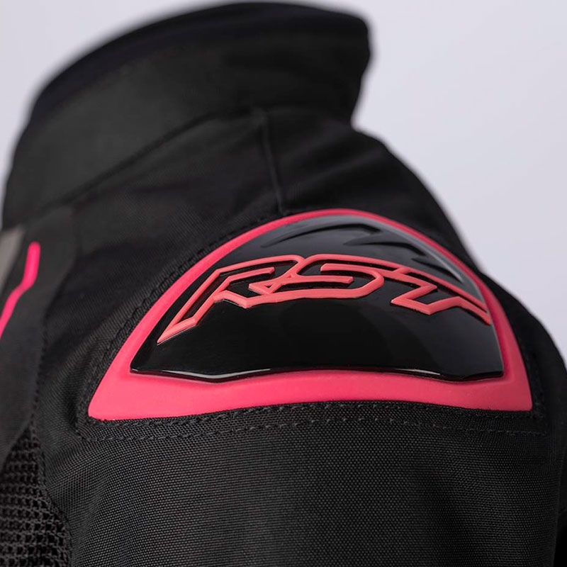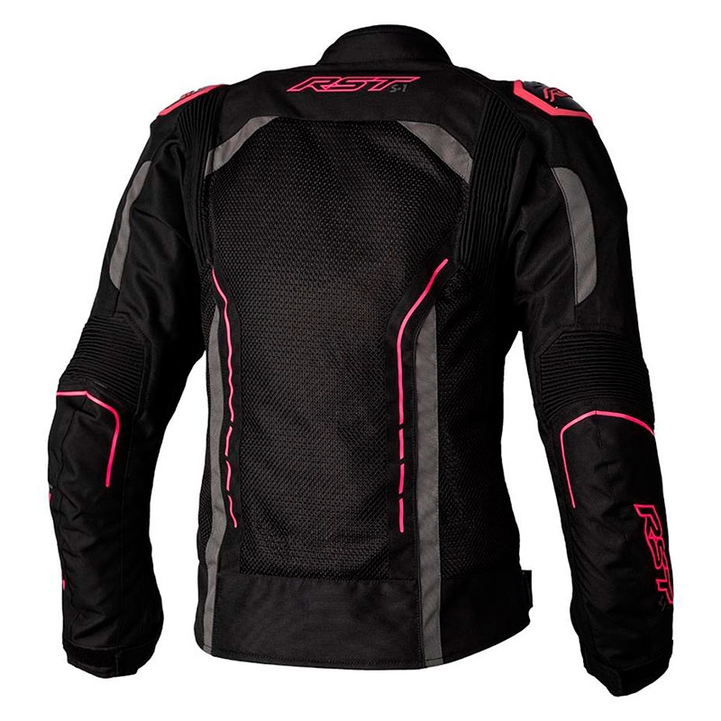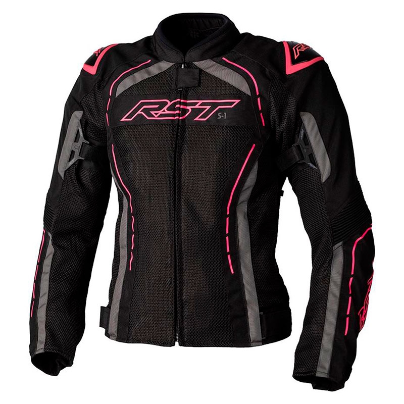 Chaqueta textil mujer perforada RST S1 Woman Mesh CE Rosa Flúor. La chaqueta RST S1 Woman Mesh ha sido especialmente diseñada para la temporada de verano. Aprovechando el chasis de la chaqueta de invierno RST S1, se le ha incorporado unos considerables paneles de tejido K540 Mesh que garantizan una excelente ventilación del cuerpo en los días más cálidos del verano. También dispone de un práctico forro SinAqua impermeable en el interior que aumenta la practicidad de la chaqueta cuando aparecen esas lluvias imprevistas. Confeccionada con tejido Maxtex con paneles elásticos detrás de los codos para mayor libertad de movimientos. Posee diferentes ajustes en puños, mangas y cintura para un ajuste personalizado, protectores interiores CE Nivel 1 en codos y hombros y protectores exteriores de PU moldeado para una resistencia adicional a los impactos.