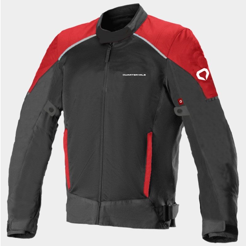 Chaqueta verano Quarter Mile Tracer 2.0 Negro / Rojo. Chaqueta de verano Tracer 2.0 – Máxima ventilación y seguridad para motoristas. La Tracer 2.0 es la evolución de una de las chaquetas más populares para los meses más calurosos. Diseñada para hombre, esta chaqueta perforada y ventilada está pensada para ofrecer confort térmico, protección y versatilidad en cualquier tipo de moto: naked, trail, scooter o touring.