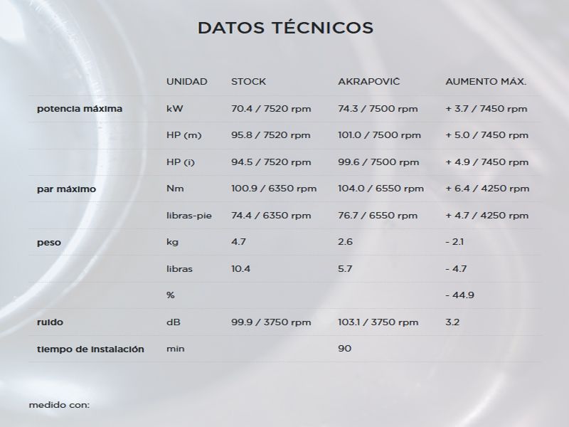 Datos técnicos colector escape Akrapovic E-H10R10/1: