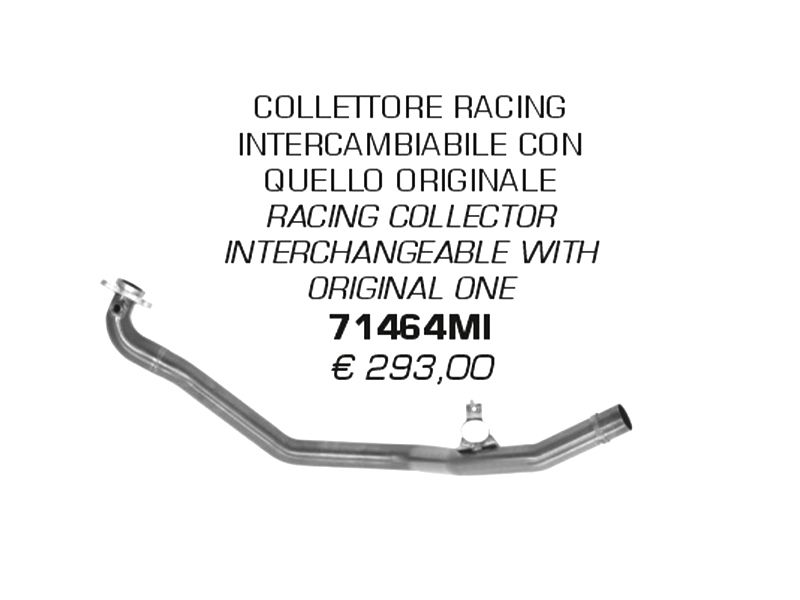 Colector escape Arrow 71464MI. Su diseño deriva directamente de la experiencia adquirida tras muchos años en el mundo de la competición. Los colectores Arrow estan fabricados en acero inoxidable AISI 304A, a esto se suma la profesionalidad y el conocimiento de los técnicos que se ocupan del diámetro, variaciones de sección, componentes, soldadura y diseño diligentemente controlados para obtener un producto muy competente, fiable y bonito. En estas obras de arte la teoría no es suficiente, existe una extrema atención en el proceso de producción. Es indispensable empalmar de la manera mas eficiente los diferentes puntos de unión, para obtener que el flujo de gases funcione de la forma más rápida. Para este fin, las conexiones entre los diferentes componentes de los colectores están fabricados con piezas hechas por máquinas de control numérico. Por el mismo motivo las soldaduras tienen que practicare delicadamente y no reducir la sección de pasaje de los gases del escape.