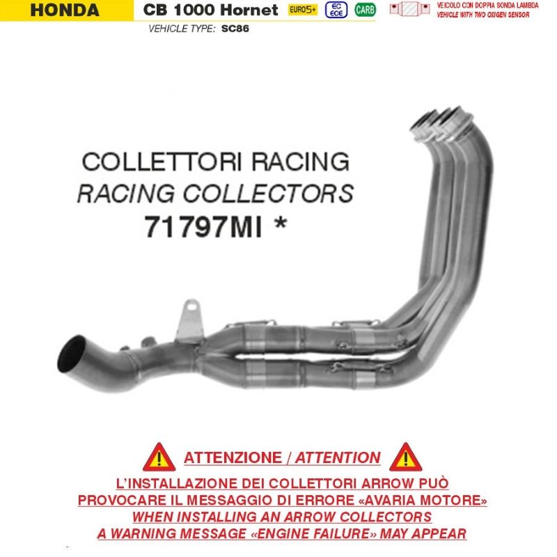 Colector escape Arrow 71797MI racing Honda CB 1000 Hornet 2025. Escapes Arrow Indy Race EVO & Colectores Racing 71797MI para Honda CB 1000 Hornet 2025. Mejora el rendimiento y el sonido de tu Honda CB 1000 Hornet 2025 con los escapes Arrow Indy Race EVO y los colectores racing Arrow 71797MI. Fabricados con materiales de alta calidad y diseñados para una instalación precisa, ofrecen un sonido más deportivo y una respuesta mejorada del motor.