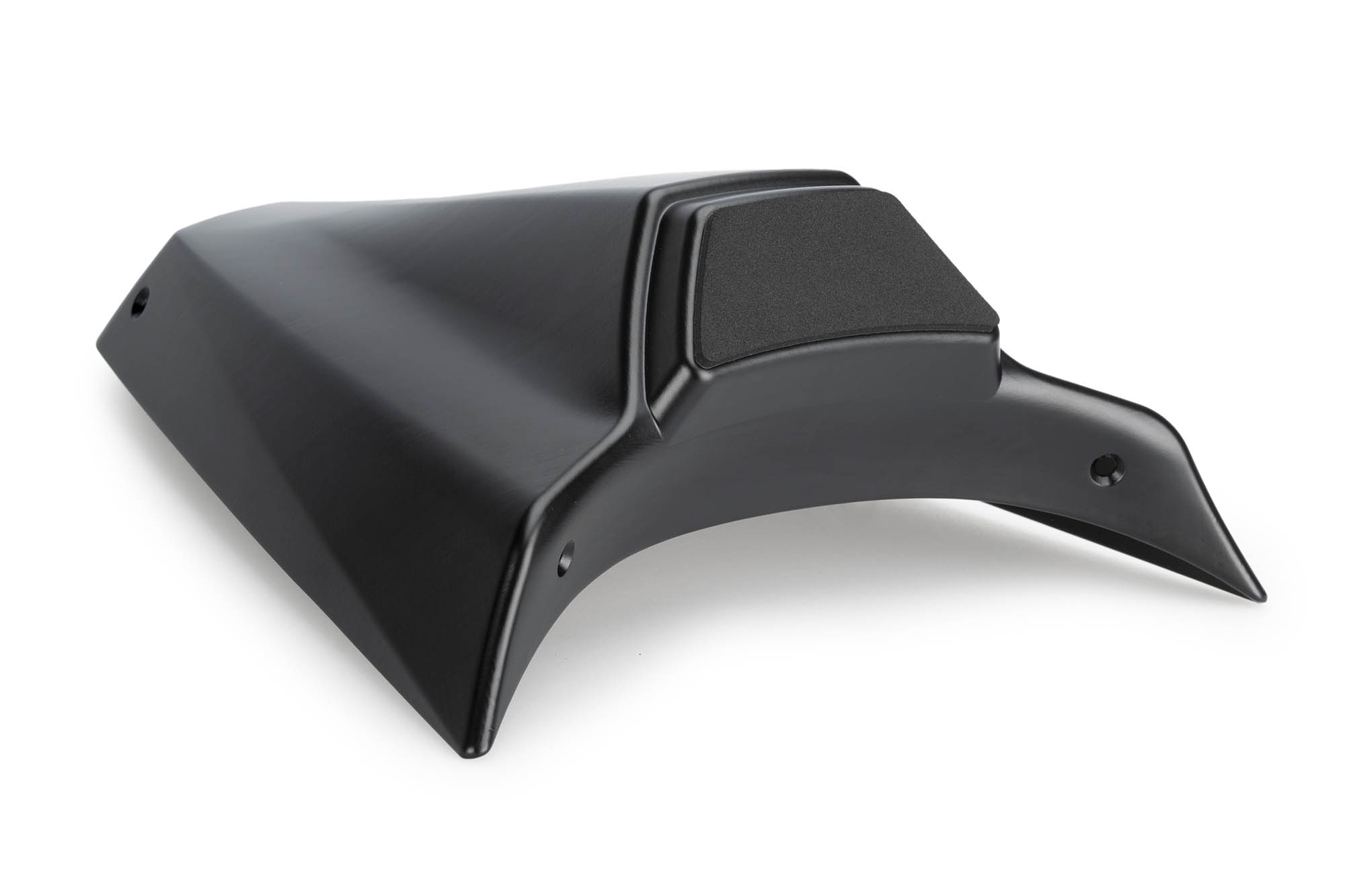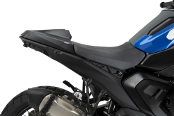 Su geometría encaja de forma precisa con el nuevo subchasis de la R1300GS, de líneas marcadas y angulosas. Destacan las dos líneas diagonales que acompañan la estructura del subchasis y la protuberancia trasera, que proporciona un apoyo adicional al piloto en conducción deportiva o a alta velocidad.