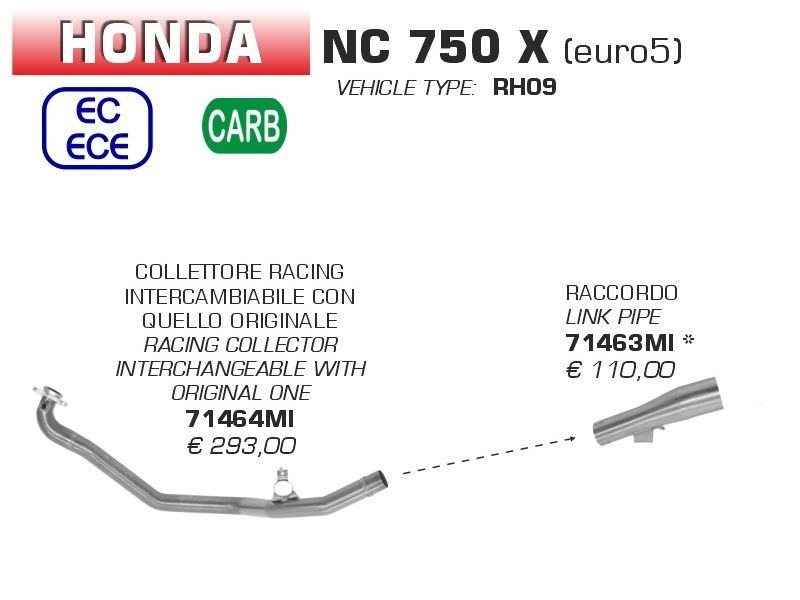 Pack ahorro escape Arrow Race-Tech Honda NC 750 X 2021. El pack incluye conector y silencioso (modelo a elegir).