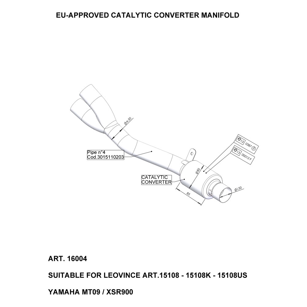 Conector escape catalizado Leovince 16004 Yamaha MT-09 / XSR 900. Conector S16004 para escapes LeoVince equipado de catalizador homologado. Cuando está especificado, el conector homologado puede sustituir el colector de la versión "db (A) compliant" y "Racing" disponibles para el mismo modelo de moto. (La información que facilita Ramirez Motoracing es orientativa y sujeta a la verificación en la web del fabricante).