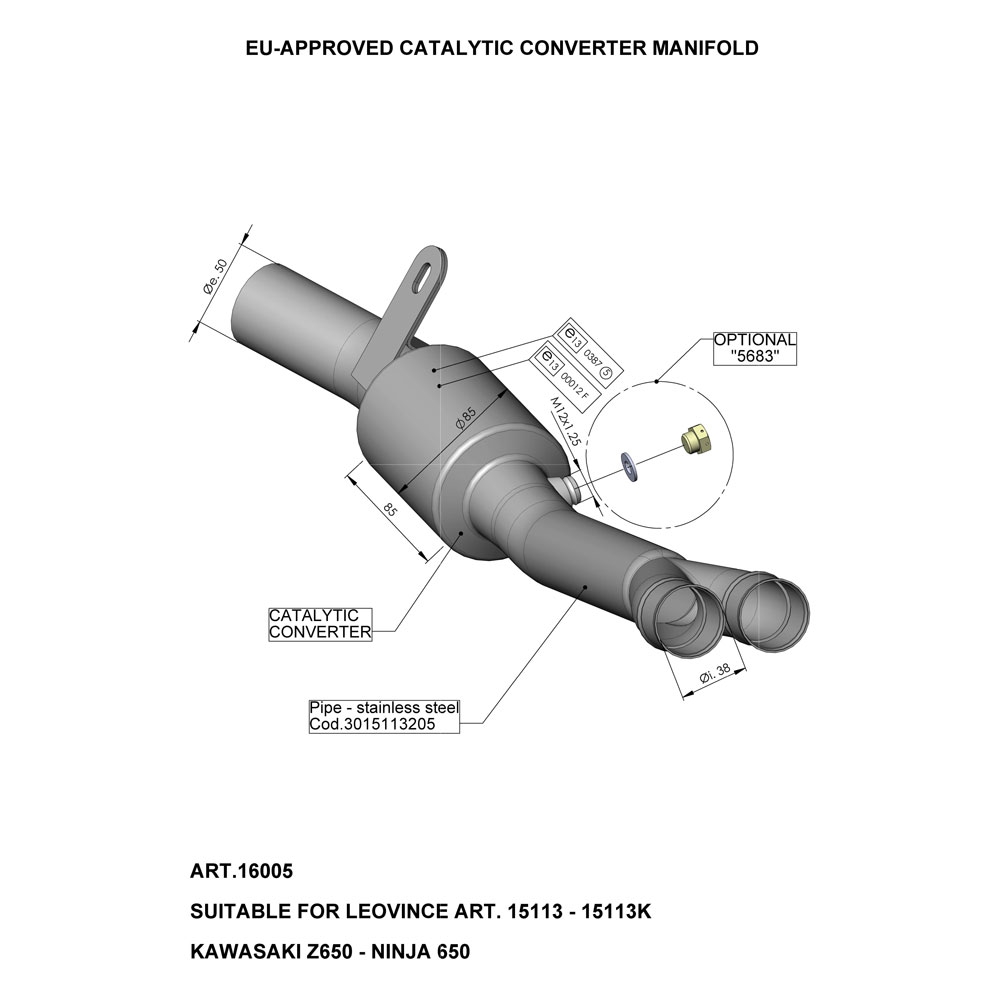 Conector escape catalizado Leovince 16005 Kawasaki Z 650 / Ninja 650