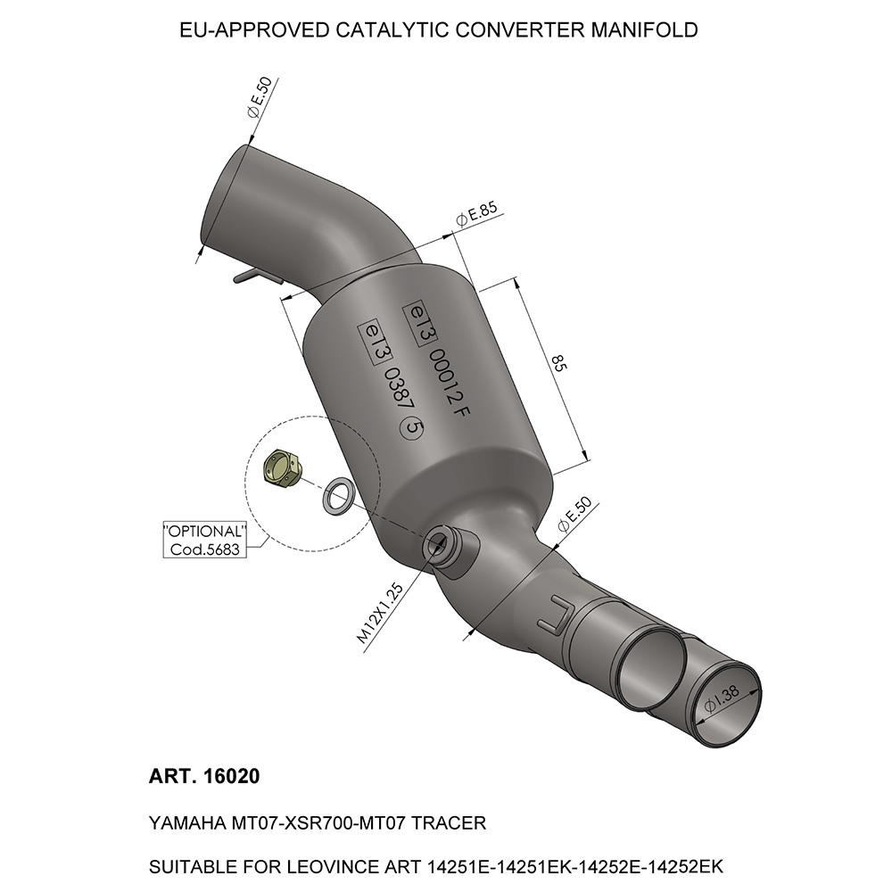 Conector escape catalizado Leovince 16020 Yamaha MT-07 / XSR 700 / Tracer 700. Conector S16020 para escapes LeoVince equipado de catalizador homologado. Cuando está especificado, el conector homologado puede sustituir el colector de la versión "db (A) compliant" y "Racing" disponibles para el mismo modelo de moto. (La información que facilita Ramirez Motoracing es orientativa y sujeta a la verificación en la web del fabricante).
