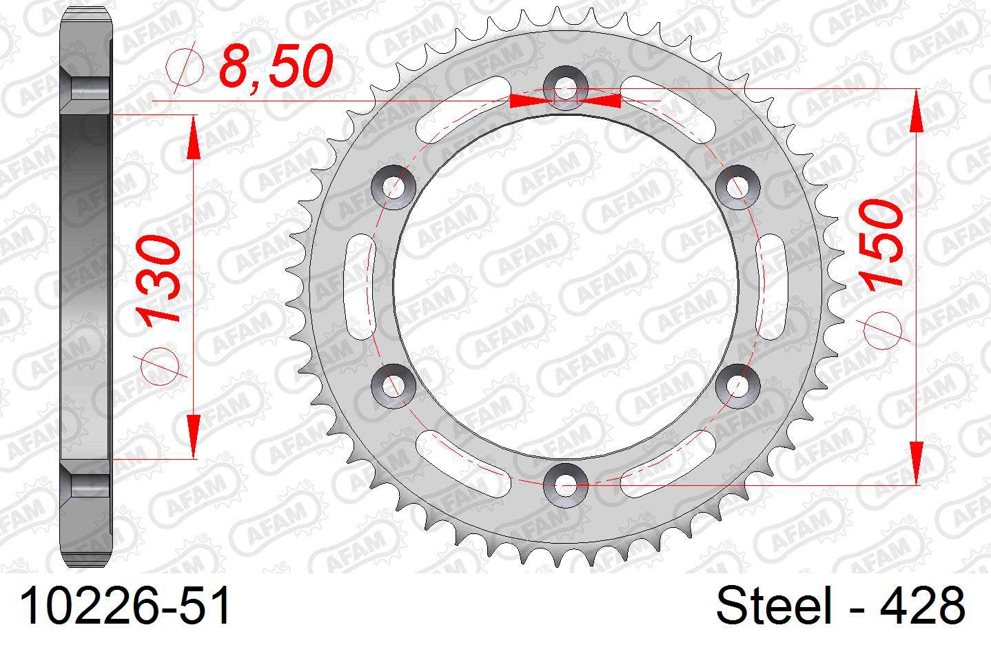 Corona AFAM 10226-51. Las coronas de transmisión para moto AFAM son reconocidas por su diseño innovador y su excelente rendimiento. Fabricadas con un alto nivel de precisión y utilizando materiales de la mejor calidad, estas coronas son elegidas por motociclistas de todo el mundo debido a su durabilidad y resistencia superior.