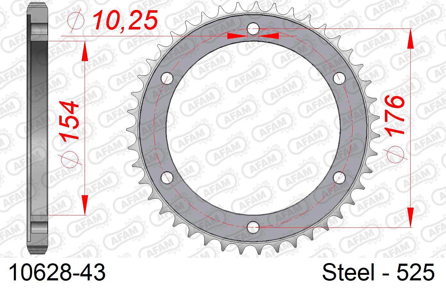 Corona AFAM 10628-43. Las coronas de transmisión para moto AFAM son reconocidas por su diseño innovador y su excelente rendimiento. Fabricadas con un alto nivel de precisión y utilizando materiales de la mejor calidad, estas coronas son elegidas por motociclistas de todo el mundo debido a su durabilidad y resistencia superior.
