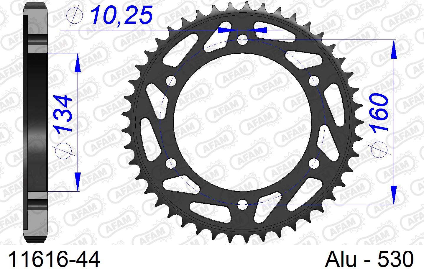 Corona AFAM 11616-44 Aluminio. Las coronas de transmisión para moto AFAM son reconocidas por su diseño innovador y su excelente rendimiento. Fabricadas con un alto nivel de precisión y utilizando materiales de la mejor calidad, estas coronas son elegidas por motociclistas de todo el mundo debido a su durabilidad y resistencia superior.