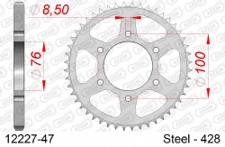 Corona AFAM 12227-47. Las coronas de transmisión para moto AFAM son reconocidas por su diseño innovador y su excelente rendimiento. Fabricadas con un alto nivel de precisión y utilizando materiales de la mejor calidad, estas coronas son elegidas por motociclistas de todo el mundo debido a su durabilidad y resistencia superior.