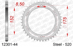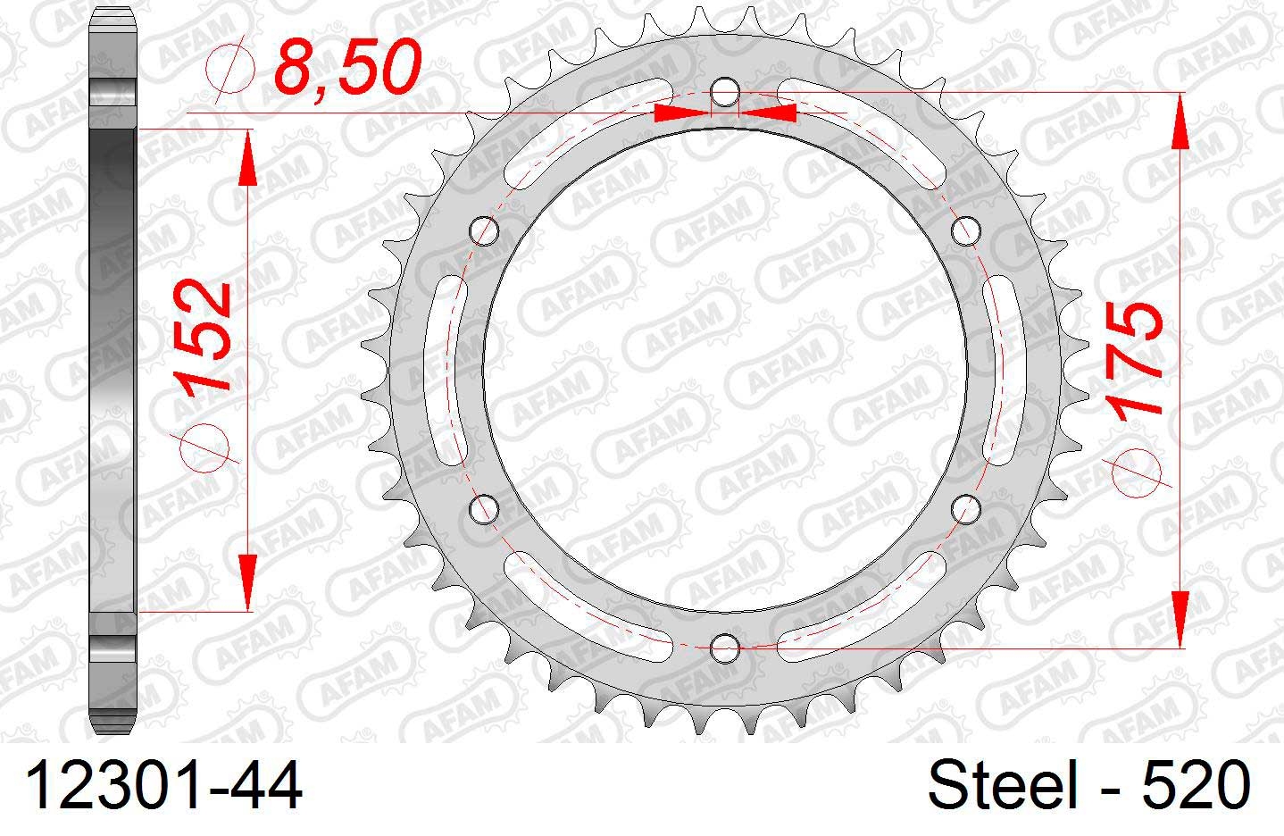 Corona AFAM 12301-44. Las coronas de transmisión para moto AFAM son reconocidas por su diseño innovador y su excelente rendimiento. Fabricadas con un alto nivel de precisión y utilizando materiales de la mejor calidad, estas coronas son elegidas por motociclistas de todo el mundo debido a su durabilidad y resistencia superior.