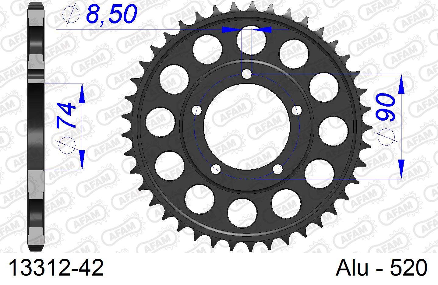Corona AFAM 13312-42 Aluminio. Las coronas de transmisión para moto AFAM son reconocidas por su diseño innovador y su excelente rendimiento. Fabricadas con un alto nivel de precisión y utilizando materiales de la mejor calidad, estas coronas son elegidas por motociclistas de todo el mundo debido a su durabilidad y resistencia superior.