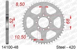Corona AFAM 14100-48. Las coronas de transmisión para moto AFAM son reconocidas por su diseño innovador y su excelente rendimiento. Fabricadas con un alto nivel de precisión y utilizando materiales de la mejor calidad, estas coronas son elegidas por motociclistas de todo el mundo debido a su durabilidad y resistencia superior.