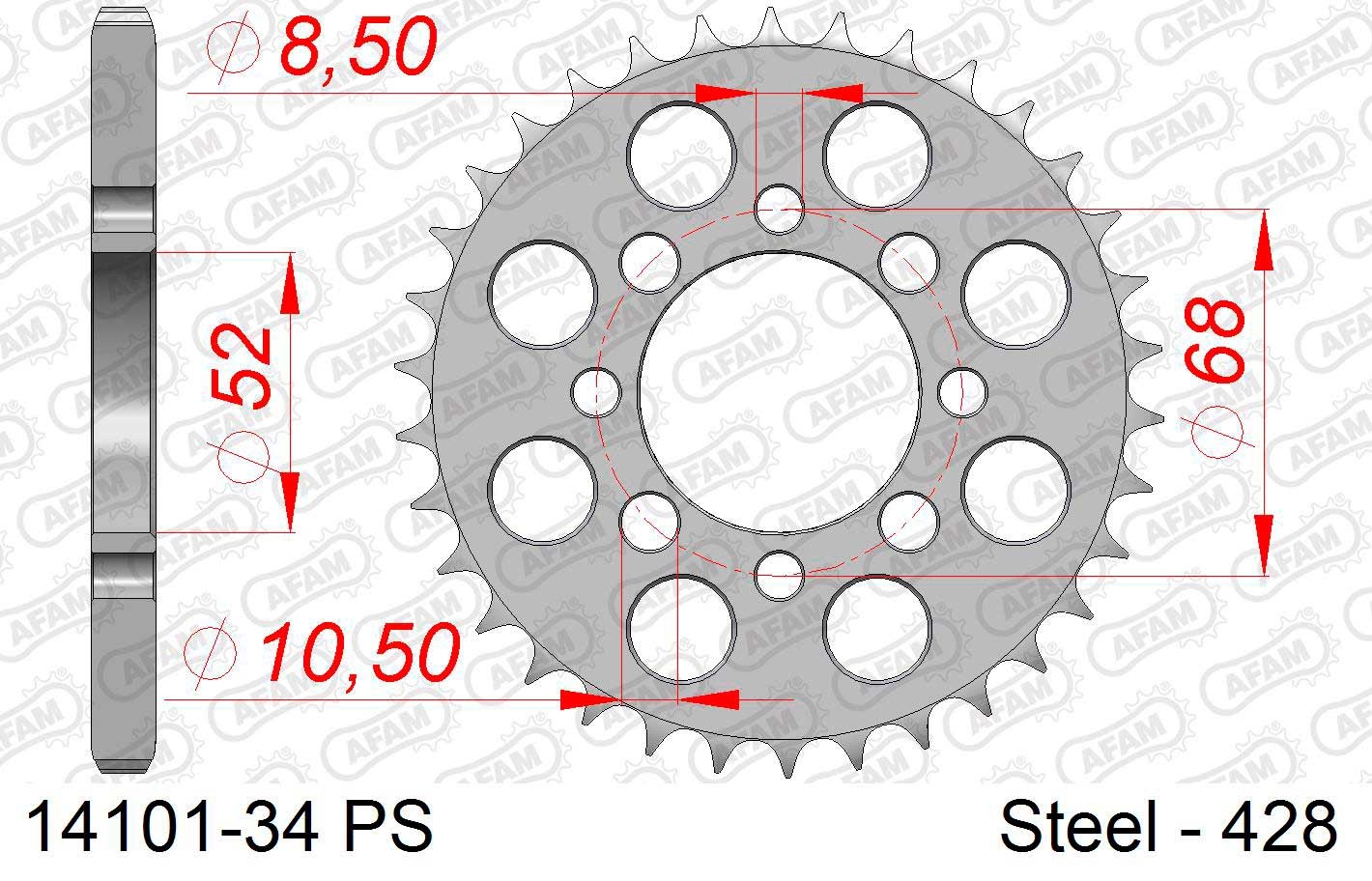 Corona AFAM 14101-34. Las coronas de transmisión para moto AFAM son reconocidas por su diseño innovador y su excelente rendimiento. Fabricadas con un alto nivel de precisión y utilizando materiales de la mejor calidad, estas coronas son elegidas por motociclistas de todo el mundo debido a su durabilidad y resistencia superior.